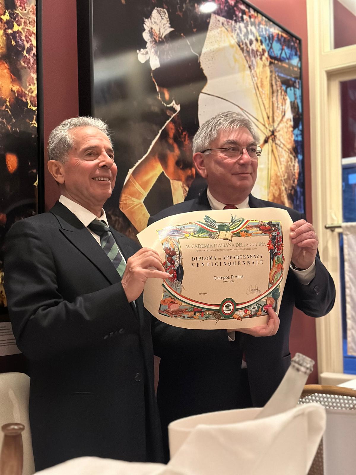 La seconda riunione conviviale si è tenuta presso il Grotto della Salute, un rinomato ristorante situato nel cuore di Massagno. Gli Accademici sono stati calorosamente accolti dal gerente Gianalberto Meregalli e dallo chef Fabio Barbaglini, che insieme costituiscono un duo dinamico, elevando l'esperienza culinaria a nuovi livelli. La gestione impeccabile di Meregalli, unita all'arte culinaria innovativa di Barbaglini, ha trasformato il Grotto in una meta essenziale per gli amanti della cucina italiana autentica e sofisticata. Ospiti della serata, Ivo Monti, eminente maestro viticoltore svizzero, e sua figlia Sabrina, rappresentante della terza generazione, erede e innovatrice nel campo. Essi incarnano l'armonia tra la tradizione enologica e la sostenibilità ambientale. Il loro lavoro nel vigneto trasforma i rigori del clima svizzero in vini di qualità eccezionale, con una gestione guidata da passione e precisione. Questa collaborazione si prefigura come un futuro promettente per il vino svizzero, caratterizzato da un approccio che bilancia cura familiare e innovazione responsabile. Durante la serata hanno offerto un'approfondita discussione sui vini selezionati per l'abbinamento con il menu e hanno condiviso le loro prospettive sulle sfide poste dal cambiamento climatico, che sta riscrivendo le dinamiche dell'enologia globale. La conviviale ha visto la partecipazione di 42 ospiti, tutti vivacemente entusiasti delle pietanze e dei vini proposti.