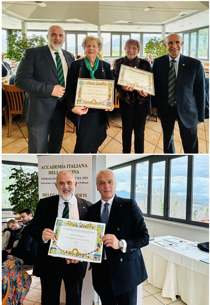 La Delegazione di Rieti ha festeggiato i cinquant’anni dalla costituzione, alla presenza del Prefetto di Rieti Pinuccia Niglio, del Sindaco di Rieti Daniele Sinibaldi, dell’Assessore Regionale Emanuela Rinaldi, dei Cons. reg. Eleonora Berni, del Presidente della Fondazione Varrone Mauro Trilli, del Capo Ufficio Comando Provinciale dei Carabinieri Ten. Col. Mariano Celi e degli Assessori Letizia Rosati, Claudia Chiarinelli e Giovanna Palomba. A festeggiare la Delegazione reatina erano presenti anche il Consigliere di Presidenza Ugo Serra, che ha portato i saluti del Presidente Paolo Petroni; i Delegati: Ugo Bellesi (Macerata), Fabio Ludovisi (Viterbo), Fabio Torresi (Fermo), Claudio Nacca (Roma Eur), Luca Cipiccia (Terni); il presidente Associazione Provinciale Cuochi Rieti Elia Grillotti e il Delegato Rieti AIS Roberto Peron. Il Delegato Francesco Maria Palomba ha ripercorso le tappe più significative di questi cinquant’anni di vita, dalla nascita - grazie ad una felice intuizione di Maria Giuseppina Truini Palomba che ha a lungo condotto la Delegazione - al lungo percorso che ha portato alla sua attuale situazione. Ha parlato poi della cucina sabina e fatto riferimento al potenziale culturale e turistico della provincia di Rieti. Dopo i saluti delle autorità, che hanno sottolineato l'importanza dell'Accademia nel contesto locale, la parola è passata ai relatori Roberto Lorenzetti, Enrico Martinoli, Stefano Petrucci e Gianfranco De Felici, moderati dal giornalista Paolo Di Lorenzo. La mattinata, apertasi con la cerimonia dell’annullo filatelico, creato per l’occasione, è proseguita presso il ristorante La Foresta. Nel corso del convivio è stato introdotto il neo Accademico Marco Faraglia e sono state premiate le Accademiche Maria Gabriella Campanelli Truini e Pasqua Leoncini Volpi per i loro quarant’anni di appartenenza al sodalizio.