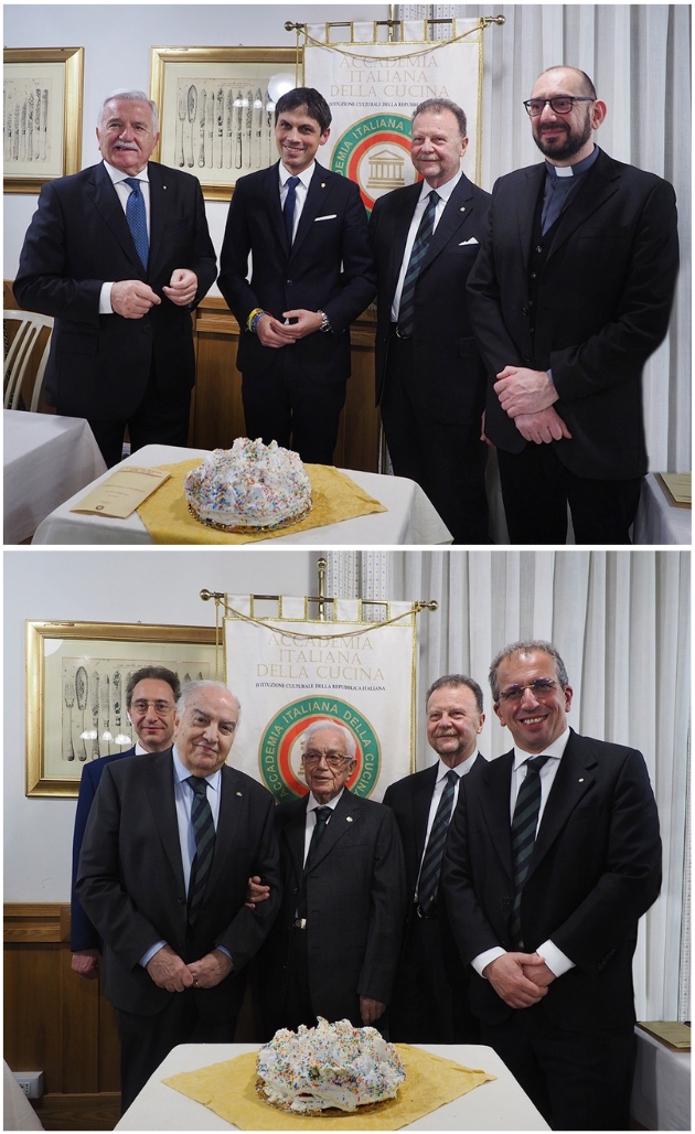 Sulla scorta di approfonditi studi storici, ricerche di archivio, bibliografiche, ma anche nei ricettari di famiglia ad opera dell’Accademica Marilena Moretti Badolato, l’11 marzo scorso, nella Residenza Municipale di Palazzo dei Priori, ospiti del Sindaco di Perugia Andrea Romizi, Massimo Moscatelli, Francesco Asdrubali, Giulia Giovagnoni, Massimo Massi Benedetti e Marilena Moretti Badolato, componenti il Comitato di Studio per la ricetta della ciaramicola costituito nell’ambito della Delegazione, hanno sottoscritto l’atto, redatto dal notaio Matilde Patrizia Leotta con il supporto dall’Accademico Adriano Crispolti, con il quale viene codificata la ricetta della ciaramicola, antico dolce identitario di Perugia Nella sede della Camera di Commercio dell’Umbria il 3 aprile, alla presenza del Segretario Generale Roberto Ariani, del Vice Delegato Antonio Giorgi e dei membri del Comitato di Studio, il Delegato Massimo Moscatelli ha consegnato l’atto al Presidente della Camera di Commercio, Giorgio Mencaroni, che a sua volta gli ha consegnato la dichiarazione di avvenuto deposito. Per festeggiare l’evento è stata organizzata una riunione conviviale presso il Ristorante La Rosetta, in pieno centro storico di Perugia, presenti circa 90 persone fra le quali il Sindaco di Perugia – la ciaramicola è, insieme al Torcolo di San Costanzo, il dolce identitario della città – il Vicario Generale dell’Arcidiocesi di Perugia – Città della Pieve – la ciaramicola è il dolce pasquale dei Perugini – e per la Camera di Commercio il Presidente, Giorgio Mencaroni, il Segretario Generale, Federico Sisti e il Vice Segretario Generale, Giuliana Piandoro, Accademica di Terni la cui collaborazione all’iniziativa è stata fondamentale. Presenti anche il Coordinatore Territoriale per l’Umbria, Guido Schiaroli, il Delegato di Assisi Emanuele Concetti e quello di Terni, Luca Cipiccia.