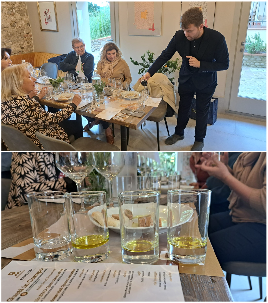 La Delegazione si è ritrovata per una degustazione dei prodotti della giovane azienda Quercia Matta, cui i proprietari dedicano cura e grande impegno di rinnovamento, facendone una realtà già convincente e aperta ad ulteriore sviluppo. Ben condotti dall’accompagnatore Vittorio, gli Accademici hanno visitato gli oliveti, i vigneti ed i nuovi impianti, destinati ad innovativa produzione di vino (poco consueta nella zona), che sfrutta la duplice natura dei terreni. Si è poi passati alla cantina e all’orciaia. Infine, a tavola (gradita ospite il Sindaco di Monsummano Terme, Simona De Caro), gli assaggi dei diversi vini ed oli (molto apprezzati) nel contesto di un vero pranzo, allestito in un bel locale accogliente, restaurato con gusto e misura, con piatti semplici e ben cucinati, proposti con garbo e cortesia, e conclusi da un singolare gelato all’olio. Al termine, il Delegato Giovannini ha salutato i graditi ospiti e gli Accademici, soddisfatti per l’esperienza.