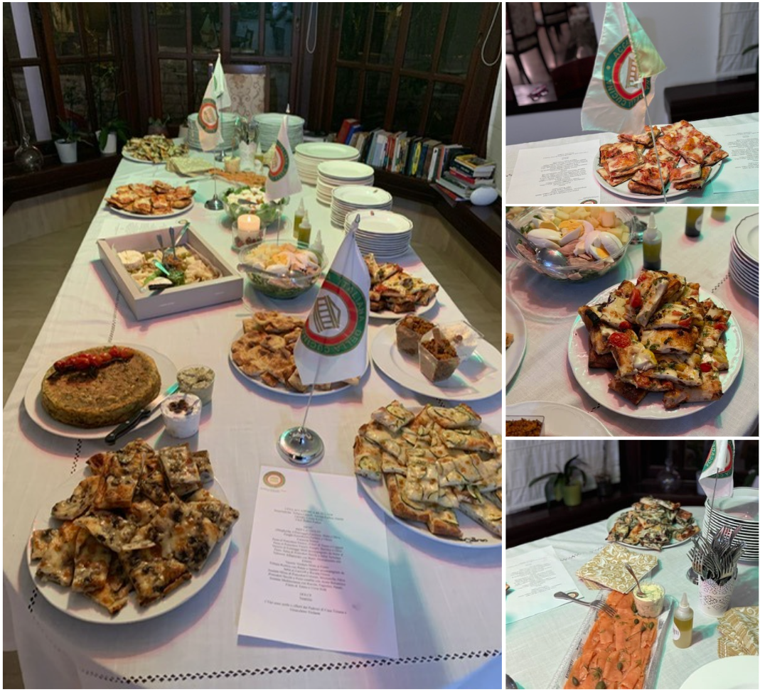 La Delegazione di Tel Aviv ha organizzato un evento conviviale nella residenza dell'attaché militare della Ambasciata d'Italia in Israele, il Colonnello Gioacchino Violante. La cena è stata preparata dalla chef Rotem Fadlun, che vive in Israele da 15 anni ed è proprietaria della catena di pizzerie "Zotapizza" di Tel Aviv. Le varianti di pizza e pasta sono state molto apprezzate dai partecipanti. L'Accademica Nessia Laniado, antropologa del cibo, ha presentato una relazione sull'origine e l'importanza della pizza nella cultura italiana e la Delegata Cinzia Klein ha donato, a nome della Delegazione, l'orologio accademico all'Accademica Tiziana Caldelli, simposiarca della splendida serata.