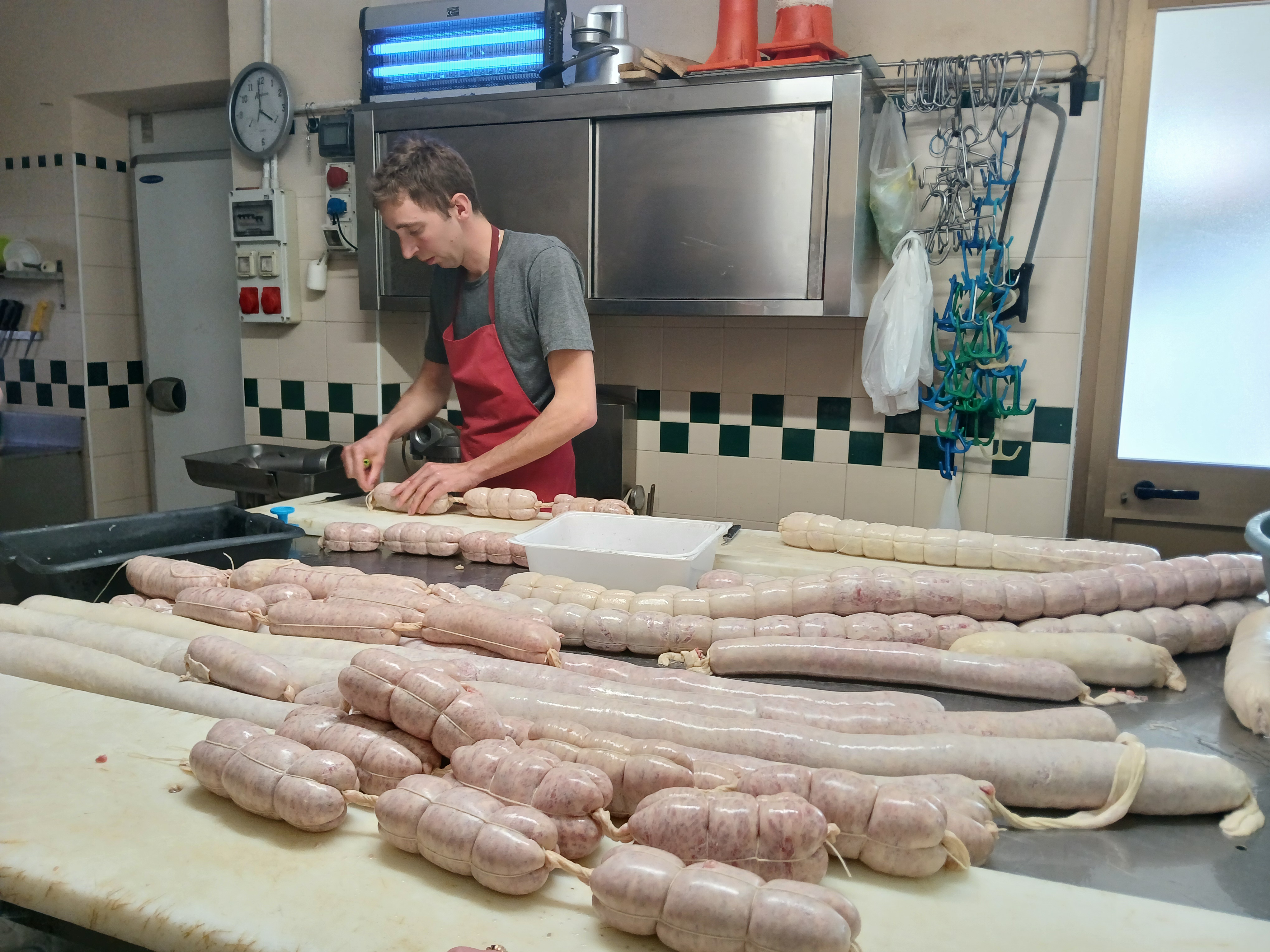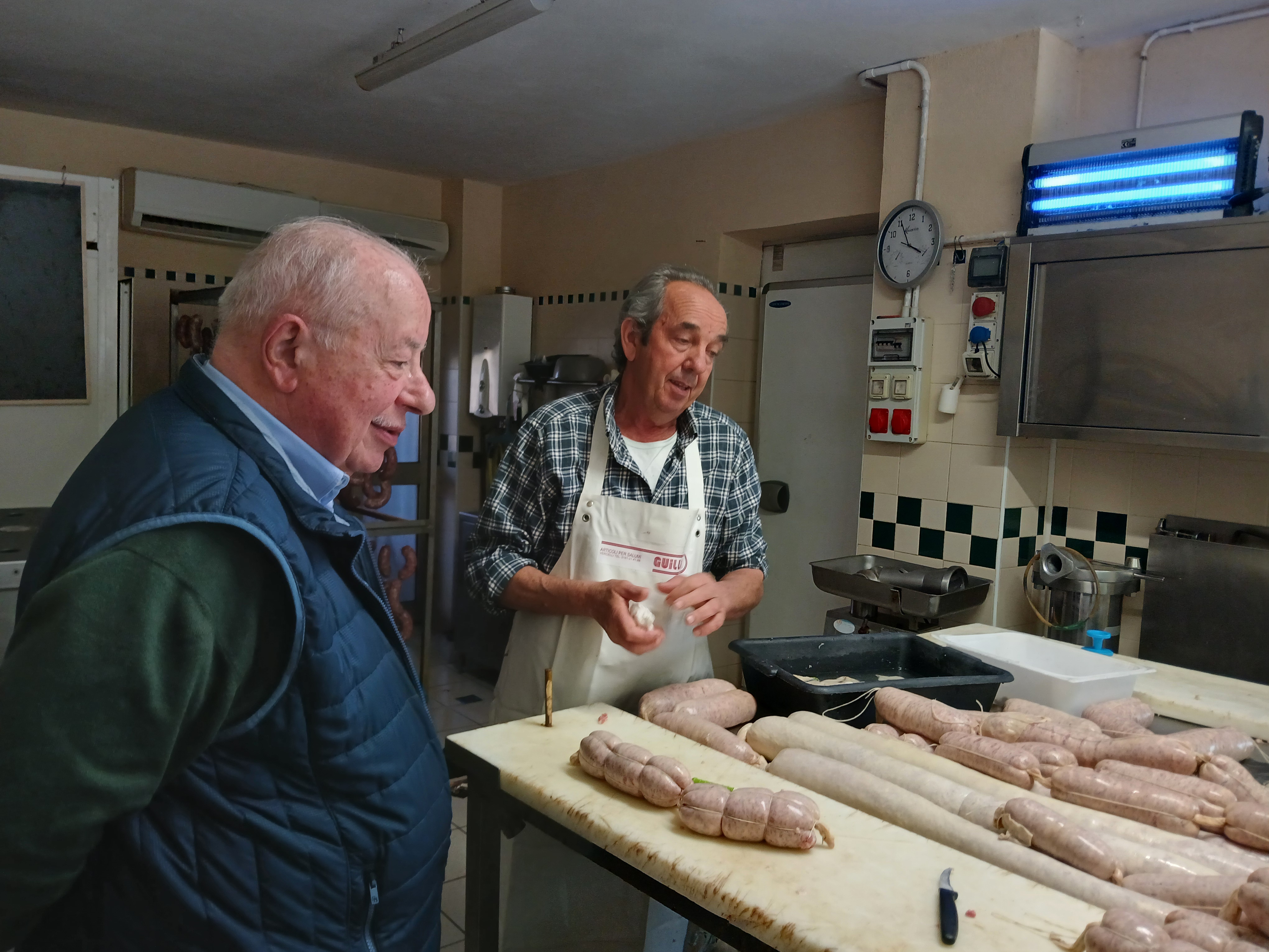 La Delegazione ha dedicato un pomeriggio alla visita di un'azienda agricola artigianale produttrice di salumi, “La Bruera”, situata nella Riserva Naturale della baraggia di Candelo, alle porte di Biella. Il nome “bruera” deriva dalla presenza di brugo che nasce spontaneo in questo ambiente che ricorda la brughiera o la savana africana. Gli Accademici sono stati accolti dal titolare, Umberto Scopel, che ha raccontato loro la nascita dell'attività e ha mostrato l'azienda iniziando dagli animali allevati, tutti nutriti esclusivamente con le granaglie coltivate in proprio. La carne dei maiali viene utilizzata per produrre diversi tipi di insaccati. Infatti l'ultima tappa della visita è stata il reparto di produzione dei salami per i quali vengono utilizzati esclusivamente budelli naturali, mentre farine, conservanti ed allergeni sono rigorosamente banditi. La giornata è terminata con una ricca degustazione dei prodotti, eccellenze del territorio, per i quali l'azienda è nota. Gli Accademici hanno potuto constatare la bontà e la genuinità di questi salumi accompagnati dai vini di un produttore della zona.