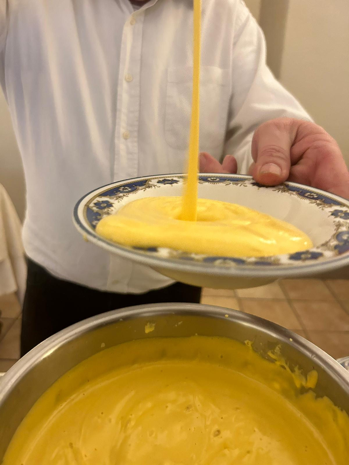 Riunione conviviale a “La Capuccina”, un elegante agriturismo in Cureggio, luogo di coltivazione della cipolla bionda di Cureggio e Fontaneto. Qui, in questa cascina del 1500, sapientemente recuperata e restaurata, è stata valorizzata e la cipolla coltivata sulle terre comprese tra i torrenti Agogna e Sizzone. Bionda, piatta, dolce, le tre parole che distinguono questa cipolla che ha un alto grado di digeribilità. A parlarne con entusiasmo il responsabile dei produttori, il giovane Oscar Temporiti, mentre l’Accademico onorario Giancarlo Andenna ha narrato la storia antica di questi luoghi. Gli Accademici sono stati accolti con garbo dalla titolare Raffaella Fortina, con tavole elegantemente apparecchiate. A tavola il cuoco Nicholas Termopolis ha preparato un particolare vitello tonnato, un uovo pochè con fonduta di toma Valsesiana e verdure croccanti, poi un dolce risotto pomodoro e cipolla bruciata, quindi fassona con il suo fondo e verdure dell’orto di casa, gelato al fiordilatte con zabaione caldo. Tutti i piatti sono stati cucinati con prodotti provenienti dalla Cascina La Capuccina, comprese carni, latte, uova. Anche i vini, ben abbinati, sono prodotti da vigneti poco distanti sempre di proprietà dell’agriturismo. Ottimo rapporto qualità prezzo.