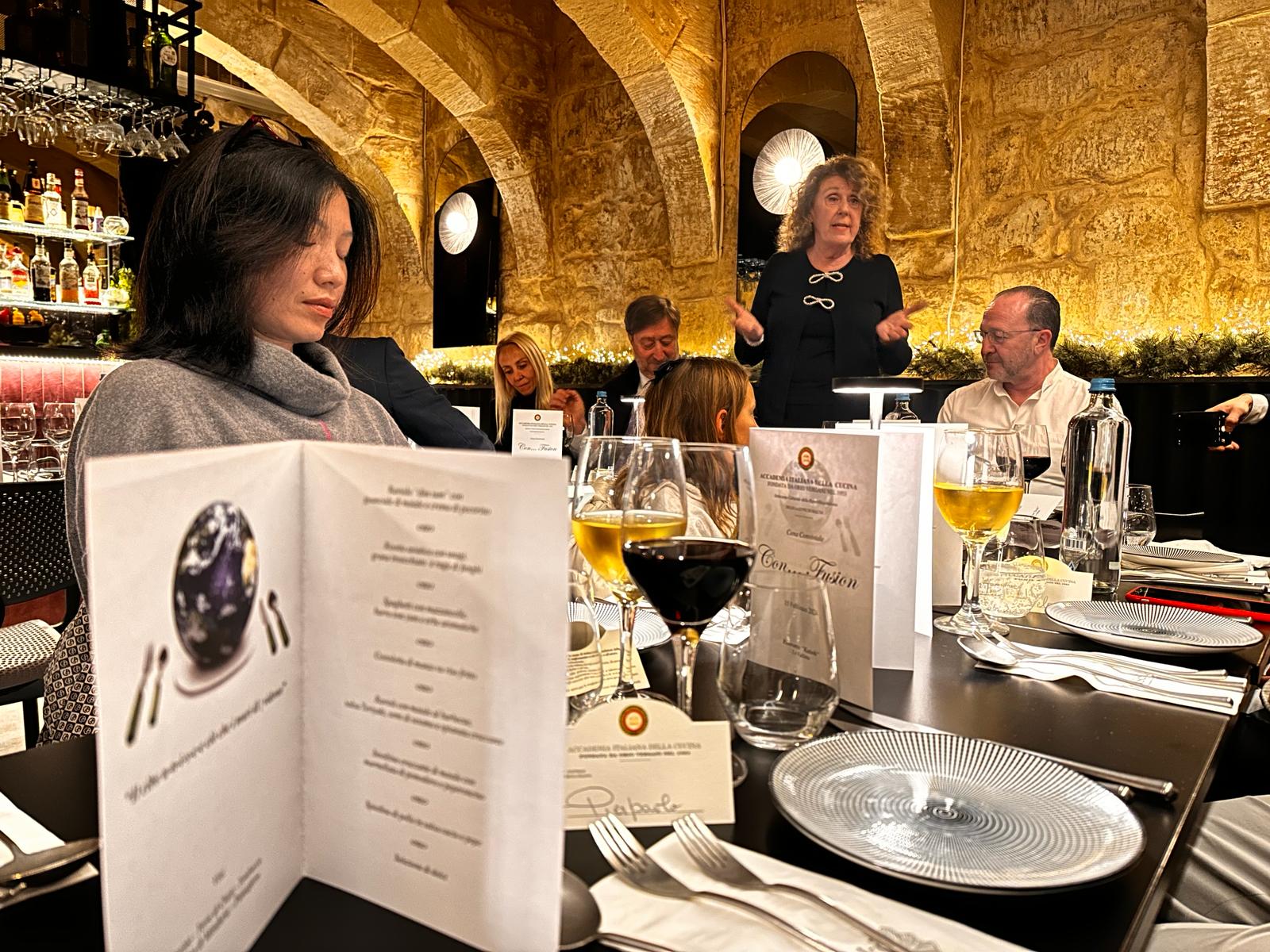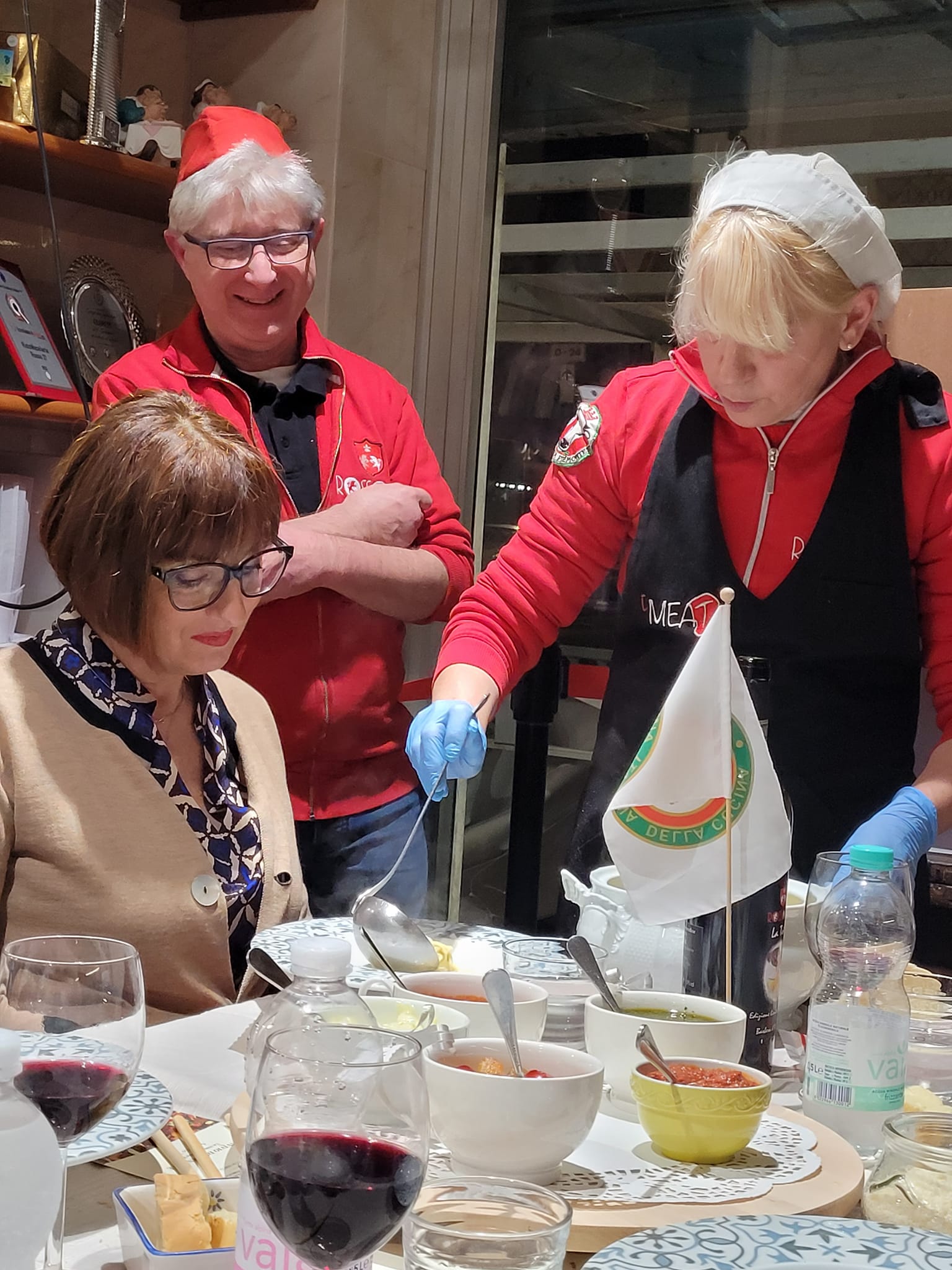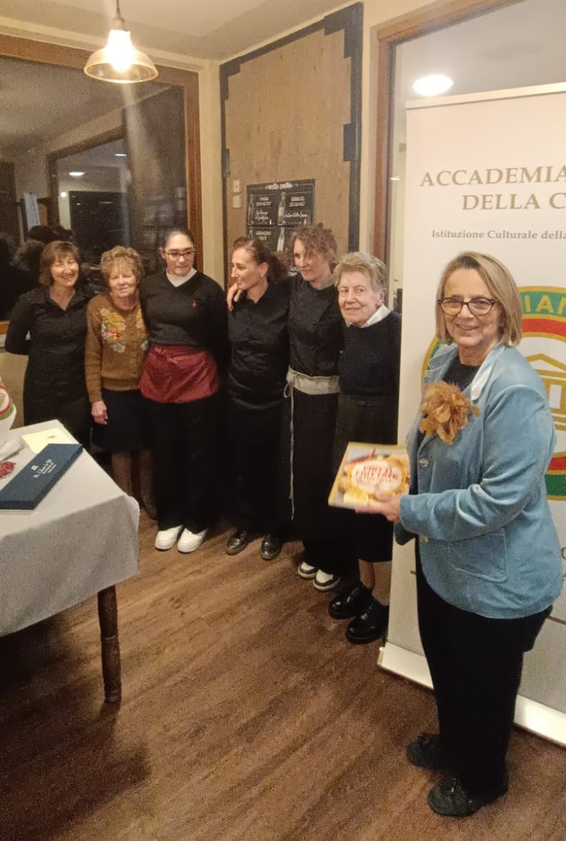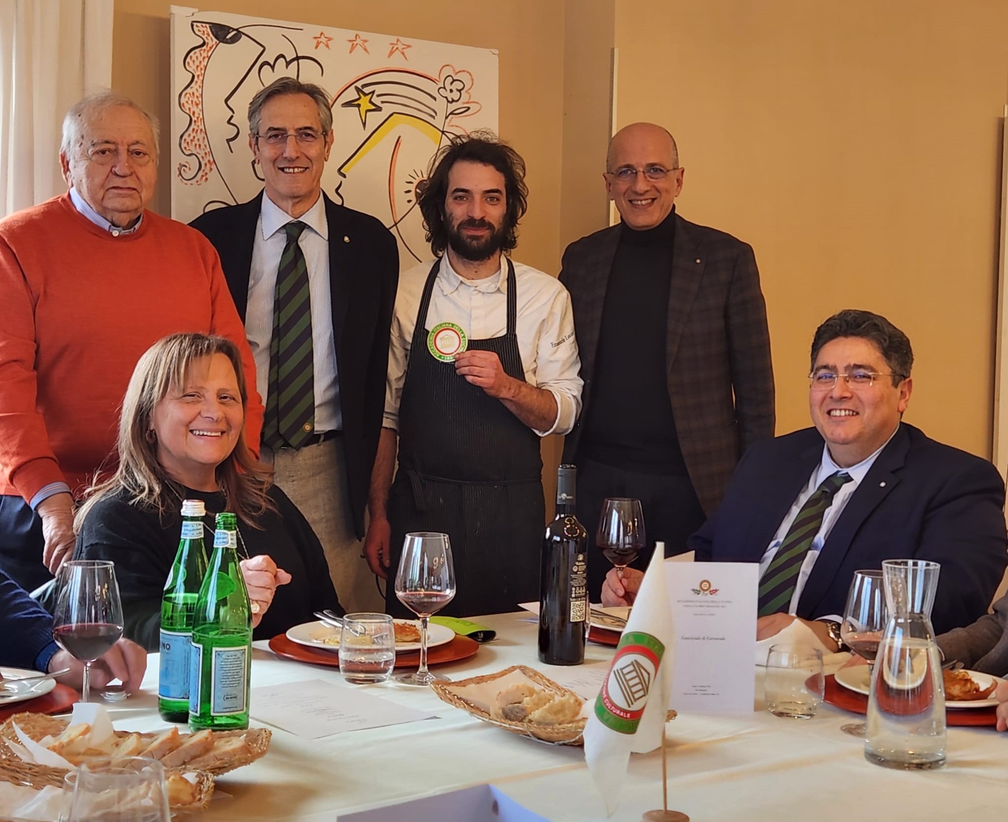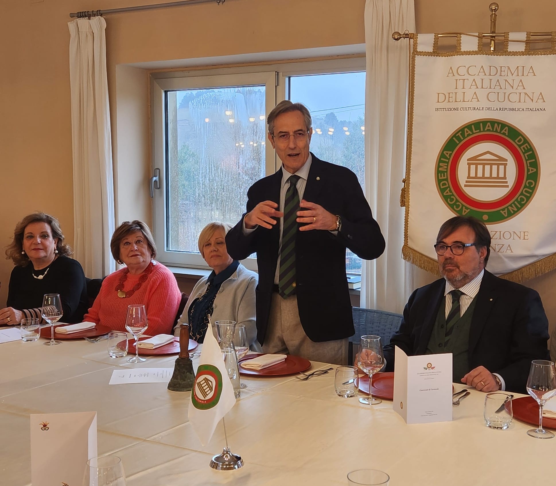 Prima riunione conviviale del 2024 della Delegazione ritrovatasi al ristorante “San Lorenzo”, alla presenza di circa 20 persone. Il locale si presenta molto accogliente e ben arredato. Il menu preparato dallo chef Massimo Fabbri è stato apprezzato: di rilievo la zuppa di fagioli con le capesante, le pappardelle al ragù di coniglio, e il pane, fatto in casa, squisito. Qualche critica ai dolci di stampo prettamente americano ritenuti troppo burrosi. Un servizio impeccabile nonostante le numerose richieste da parte dei commensali. La serata si è svolta in un clima di amicizia e convivialità festeggiando la nuova Accademica Luisa Daniele.