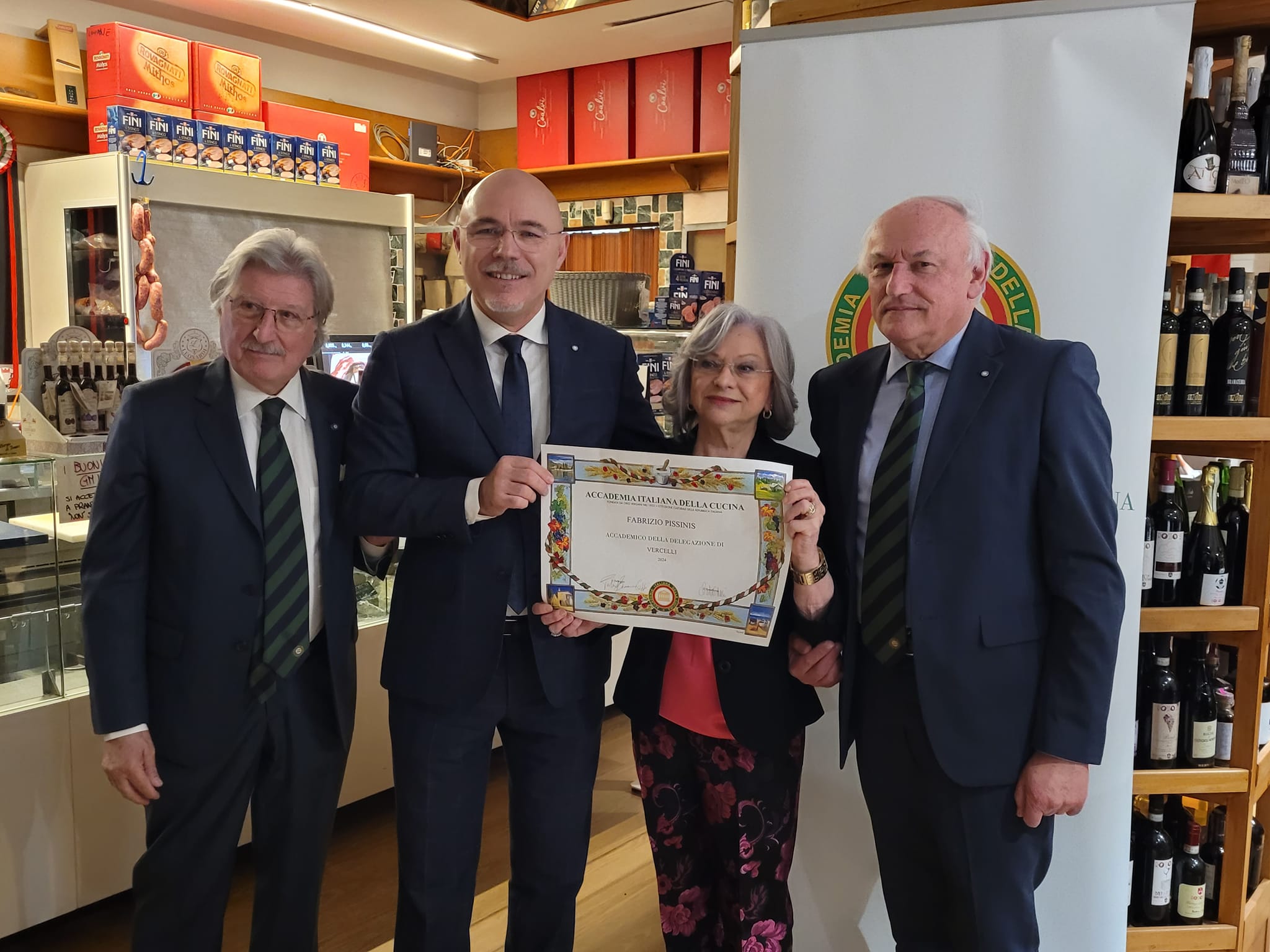Per il Convivio di Carnevale la Delegazione di Vercelli ha fatto tappa alla RistoMacelleriaRosso 27 per la cena del Bollito Misto. Claudio Limberti, macellaio di seconda generazione, dopo i primi insegnamenti del padre Giovanni e una lunga gavetta, nel 2004 con la moglie Gabriella Aietti ha rilevato la storica macelleria Bottega della Carne. Nel 2015 ha avuto un’intuizione geniale, ovvero ampliare la macelleria e trasformarla nella RistoMacelleria Rosso27, un locale camaleontico, nel Registro delle Eccellenze Italiane, con vendita al dettaglio durante il giorno e vero e proprio ristorante negli orari del pranzo e della cena. Non poteva esserci posto migliore per la cena del bollito della Delegazione, con i padroni di casa che hanno cucinato e illustrato i diversi tagli portati in tavola. Nel corso della riunione conviviale ha fatto il suo ingresso come nuovo Accademico Fabrizio Pissinis.