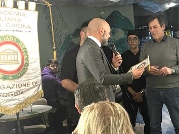Per la riunione conviviale di apertura dell’anno 2024 il Delegato Valerio Antonio Vinelli ha nominato Simposiarca la Consultrice Carmen D’Intino, che ha optato per il Ristorante KRUDO, il più recente e centrale della città, inaugurato da poco più di un anno e a pochi passi dalla centralissima Piazza Cavour con la Fontana del Sele. Il Delegato, dopo i saluti di rito e l’esposizione del programma per il nuovo anno, ha presentato il nuovo Accademico Giuseppe Calzone. La Simposiarca ha, quindi, illustrato le caratteristiche del locale, di elegante ispirazione marina, esclusivamente di pesce e frutti di mare, con annesso Oyster Fish Bar e banco pescheria, posto ideale per gli amanti del crudo di mare, nonché il menù della serata, tutto a base di pesce, dalla mousse di baccalà su bottoncini di polenta al sashimi di ricciola; dal polpo con cozze su cremoso di topinambur alla calamarata al ragù di bottarga di muggine; dal filetto di branzino farcito con cime di rape e ricotta vaccina al cremoso di acciughe del Cantabrico con lampascioni sott’olio. Nutrita, ai limiti della capienza della sala principale, la partecipazione di soci e ospiti interessati alle attività della Delegazione. Al termine della serata sono stati presentati lo chef Leonardo Cici, la brigata di cucina e il titolare, sig. Romolo Romeo, industriale foggiano appassionato di nautica e pesca, al quale è stato consegnato il guidoncino della Delegazione, messo immediatamente in bella mostra nel locale.
