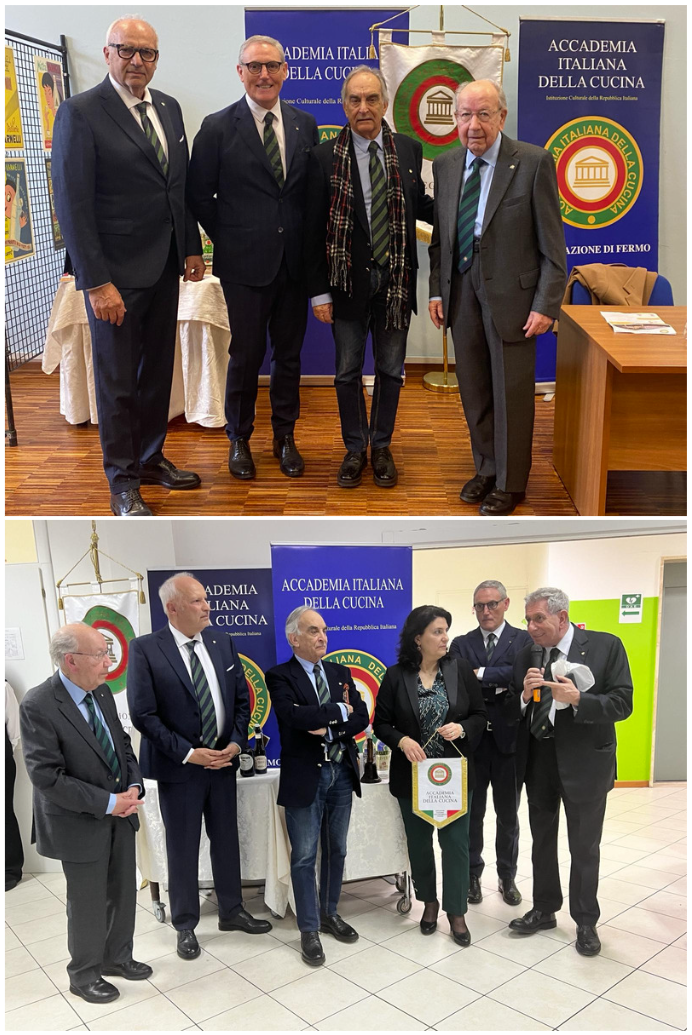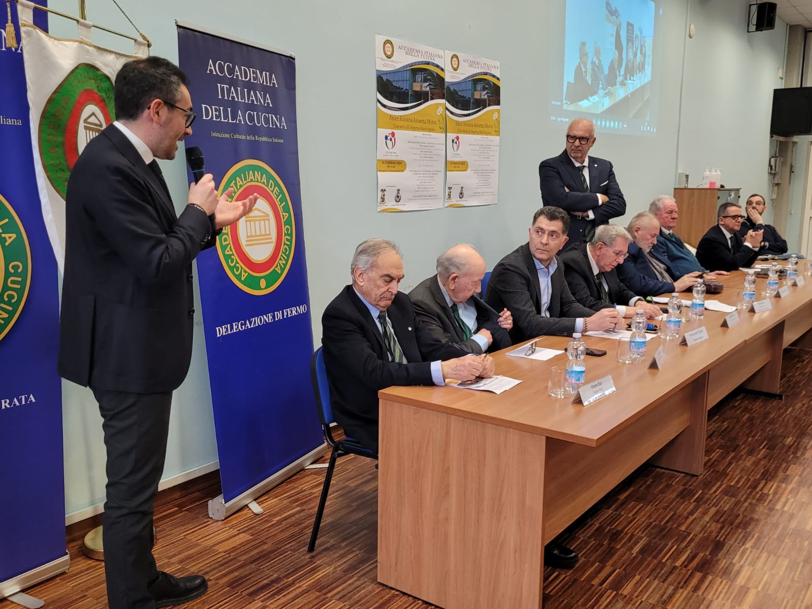 La Delegazione di Fermo in collaborazione con le Delegazioni di Ascoli Piceno e di Macerata, ha promosso l’evento “Anice, anisina, anisetta, mistrà: una storia di impresa marchigiana” che visto coinvolto l’ISS Polo Urbani - indirizzo Enogastronomico ed Ospitalità Alberghiera di Porto Sant’Elpidio. Dopo il benvenuto del Delegato di Fermo Fabio Torresi, i saluti istituzionali del Sindaco di Porto Sant’Elpidio Massimiliano Ciarpella e del Presidente della Provincia Michele Ortenzi, del prof. Mario Andrenacci e del Dirigente scolastico prof.ssa Laura D’Ignazi e del Coordinatore Marche AIC Sandro Marani, ha preso il via la parte scientifica del convegno titolata “Anice: storia, tradizioni, usi e virtù” moderata dal Delegato di Macerata Ugo Bellesi. Ha aperto Leonardo Seghetti, Accademico onorario e membro del Centro Studi Marenghi al quale ha fatto seguito l’Accademico Sauro Vittori e ha chiuso l’Accademico Lando Siliquini. Il Delegato di Ascoli Piceno Vittorio Ricci ha moderato la seconda sessione titolata “Dalla distilleria all’impresa: storie di famiglie e di imprese” con l’intervento del dott. Giovanni Martinelli, storico poliedrico, seguito dalle affascinanti storie di due aziende che da generazioni hanno promosso l’uso dell’anice nella liquoristica con il dott. Matteo Meletti e la dott.ssa Simonetta Varnelli. Affollatissima e attenta la platea che ha tributato calorosi applausi alle piacevoli e colte relazioni e alle conclusioni tratte dal Vice Presidente Vicario dell’Accademia Mimmo D’Alessio. Al termine, l’aperitivo degustazione di cocktail e preparazioni a base di anice curata dagli studenti del corso di sala e bar guidati dal prof. Stefano Isidori, giusto preludio della cena a tema con pietanze ideate e confezionate dagli studenti dell’indirizzo Sala e Cucina guidati dai docenti prof. Massimo Carboni e prof. Enrico Maria Rimpano. Il convivio ha visto la partecipazione numerosa di Delegati e Accademici anche di altre Delegazioni italiane.
