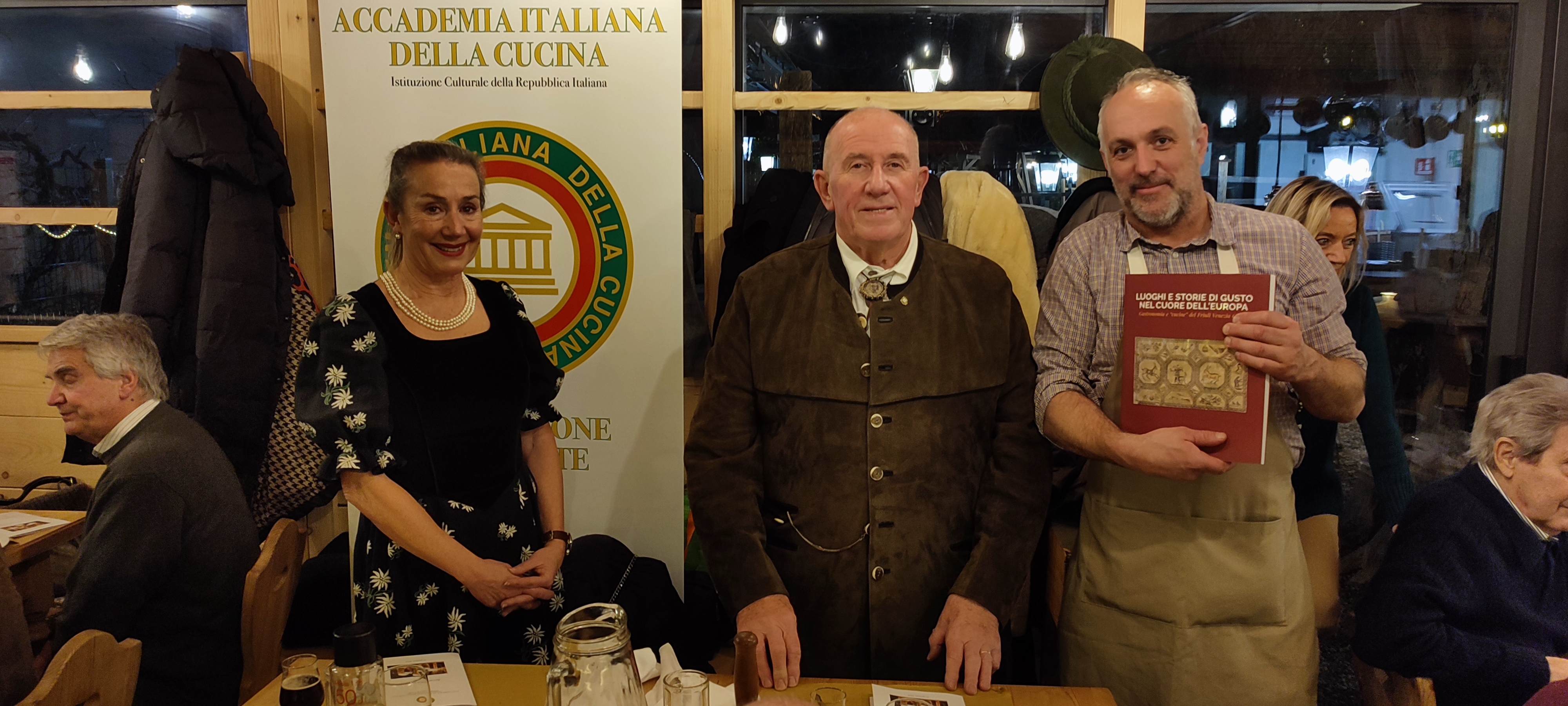 La Delegazione si è ritrovata all’Albergo Ristorante da Carla Failela per la riunione conviviale in occasione della quale è avvenuta la consegna del Premio “Dino Villani” ad Alice Pertile di Grattanuvole Società Agricola S.S, Valli del Pasubio (Vicenza) per la robiola fiorita di capra. Durante la serata sono stati presentati anche i due nuovi Accademici Antonio Monaco e Roberto Garzaro. Una bella serata invernale all’ombra del Monte Pasubio organizzata dal Simposiarca Massimo Carboniero per gustare i piatti dell’alta valle del Leogra. Si è iniziato con della buona sopressa locale e del formaggio con dello sciroppo al tarassaco. Come antipasto è stata servita della ottima crema di porro bella da vedere e da gustare per poi passare a dei ravioli (bauletti) ripieni di stracotto di manzo con ristretto al vino rosso. Come secondo un’eccellente guancetta di maialino molto morbida e gustosa. Per finire un magnifico semifreddo al torrone con marmellata di corniole a chiudere degnamente la serata. Più che buono l’abbinamento dei vini.