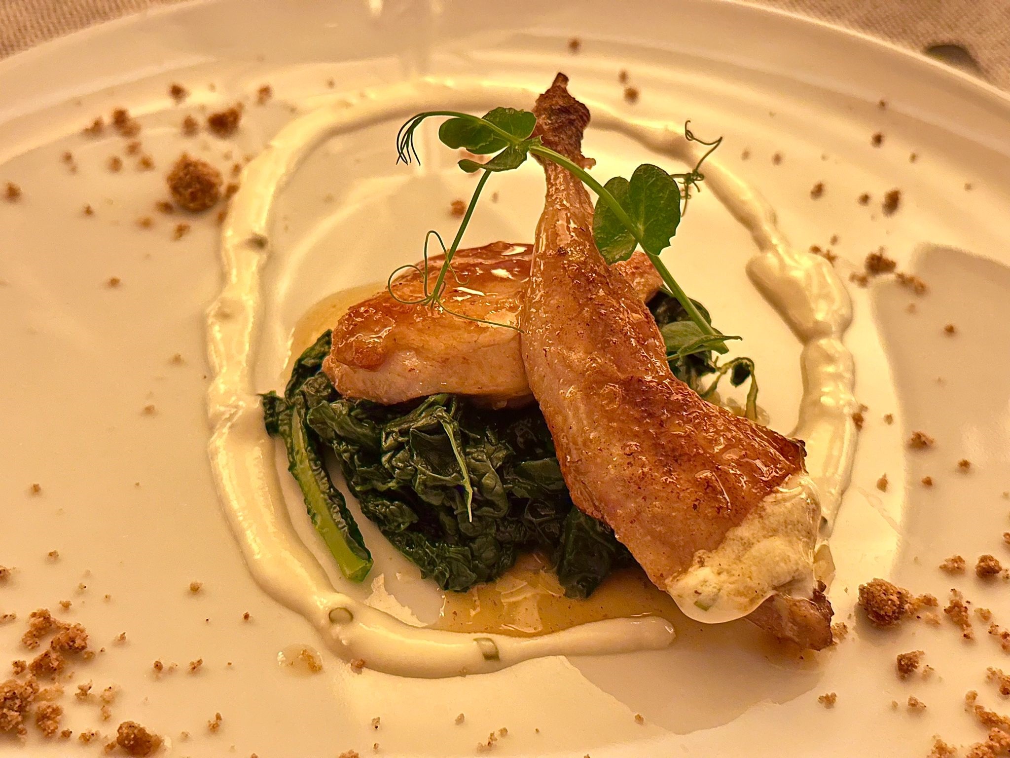 Il primo approdo del nuovo percorso accademico è avvenuto nelle salette dell'Osteria Callegherie dove da pochi mesi si è insediato tra i fornelli lo sperimentato cuoco Maurizio Iacobone. La novità è stata pienamente apprezzata dagli Accademici che hanno gradito le proposte della cucina a partire dalla gustosa quaglia arrostita, con cavolo nero crema acida e crumble al caffè, cui hanno fatto seguito un ben mantecato risotto alla zucca - cui non avrebbe nuociuto un pizzico di sapidità in più - con parmigiano e un tenerissimo carré di agnello accompagnato da un'ottima fonduta di formaggio di grotta. Anche i passatelli al cioccolato sono risultati convincenti. Davvero esemplare il servizio accomunato nel plauso finale alla cucina e al gestore e sommelier Leonardo Mantovani.