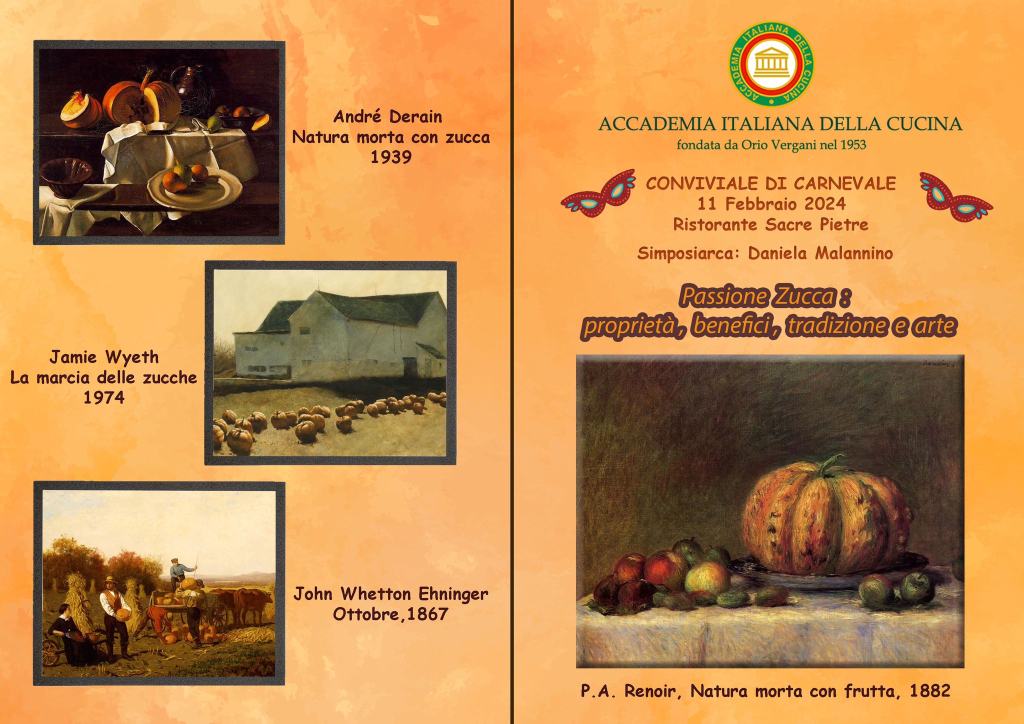 La riunione conviviale di Carnevale della Delegazione di Siracusa si è svolta presso il ristorante le "Sacre Pietre" sito nella Valle dell’Anapo in prossimità della Necropoli di Pantalica, zona di grande interesse naturalistico e archeologico tanto da essere dichiarato dall’Unesco nel 2005 Patrimonio dell’umanità. Apprezzata dagli Accademici la filosofia del ristoratore di promuovere la coltivazione biologica portando in tavola prodotti genuini del territorio e ricette della tradizione. La presenza sulle pareti di piatti decorativi con frasi tipiche di saggezza popolare in lingua siciliana rende il posto singolare. Originale la presenza in tavola di maschere colorate in pasta frolla e di vasetti di miele di Sortino, gradevole la relazione della Simposiarca Daniela Malannino sulla zucca.