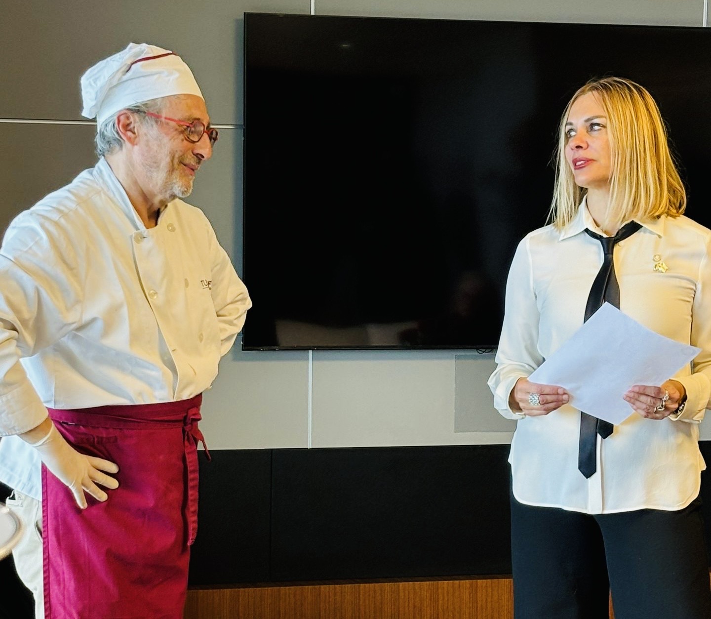 La Delegazione di Londra ha organizzato la prima riunione conviviale del 2024 presso Sumosan Twiga in Knightsbridge per una speciale serata in cui alla prelibatezza della cucina italiana si sono accompagnate note della gastronomia nipponica, famosa per l'accoppiamento dei sapori naturali e per la presentazione delle portate. Il locale londinese è nato dal connubio tra il notissimo Twiga, presente in località di prestigio in Italia, e Sumosan, punto di riferimento dell’alta cucina innovativa giapponese, presente in diverse località internazionali. Fra i circa 70 partecipanti, ospiti d'onore il Vice Ambasciatore Riccardo Smimmo e Signora Marina, il Console Generale Domenico Bellantone e Signora Marinù, il Console Rossella Gentile (Accademica trasferita di recente dalla Delegazione di Singapore), il Console Alessandro Mignini. La scelta di questo menu italo-giapponese nasce dal desiderio di voler presentare al meglio agli Accademici le specialità di un locale che si ispira al connubio fra la squisita bellezza della cultura giapponese con la magia atemporale della tradizione italiana. Il menu concordato con lo chef, in linea con la filosofia del locale, è stata una trasposizione in chiave moderna della migliore tradizione italiana con ingredienti di primissima qualità, arricchita da profumi della miglior gastronomia nipponica, il tutto accompagnato da ottimi spumanti e vini italiani. Alla fine grandi applausi per lo chef, il personale di sala e la Simposiarca Federica Provolenti Paulis. Il Delegato e Vice Presidente dell’Accademia Maurizio Fazzari ha consegnato allo chef e alla responsabile degli eventi di Sumosan Twiga il piatto ricordo dell'Accademia.