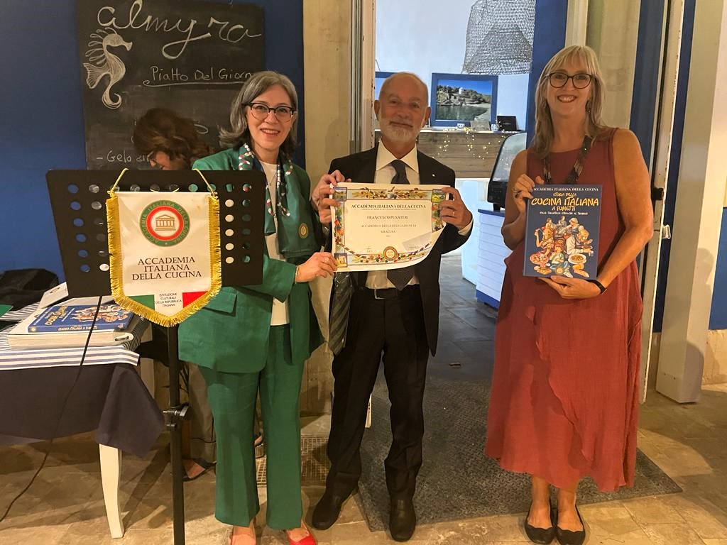 Riunione conviviale della Delegazione di Siracusa presso il ristorante Almyra (foto 1; 2), tipico locale marinaro in riva al mare situato in un contesto rilassante. Piatti semplici e saporiti e nel contempo raffinati con particolare attenzione alla materia prima. La cena è stata preceduta da un’interessante relazione del Direttore del Museo del Mare di Siracusa e di un pescatore locale, tenuta in prossimità del molo con sullo sfondo le barche impegnate nella pesca della lampuga, pesce di fine estate. Durante il convivio sono stati presentati due nuovi Accademici: Giorgio Iurato (foto 3) e Francesco Pusateri (foto 4).