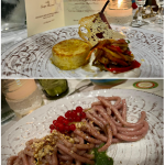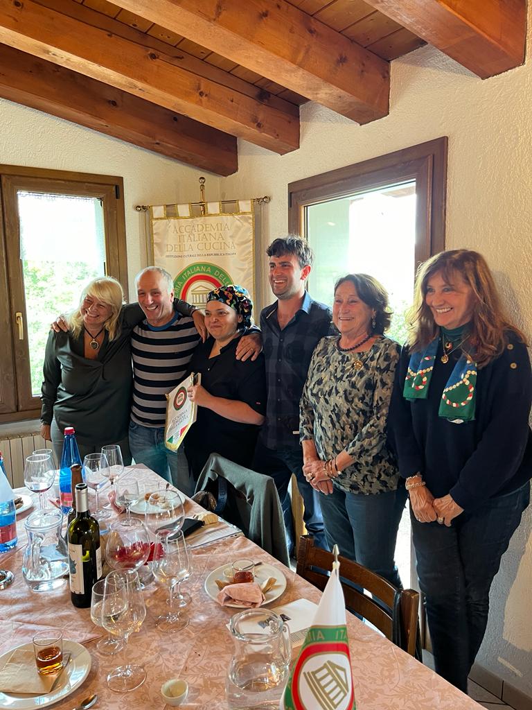 Convivio di ritrovo dopo il periodo estivo al limite della Delegazione in prossimità del Lago Santo, per gustare una cucina di confine tra Emilia e Toscana ricca di spunti. Su programma di Maria Bianca Pini Bentivoglio portato a compimento da Laura Farina, la Delegazione ha scelto come ristorante La Buca delle fate il cui menu propone da tempo e con successo la produzione casearia della Az. Agr. Le capre della Selva Romanesca, abilmente usato nella cucina di Mia, chef del locale. E la Delegazione coglie l’occasione per consegnare proprio all’Az. Agr. Le capre della Selva Romanesca di Frassinoro il Premio Massimo Alberini 2023. All’evento sono quindi presenti i giovani conduttori dell’Azienda, con il responsabile dell’allevamento Mattia Manfredini e rappresentanti del caseificio accompagnati dal conduttore senior Riccardo Marcolini. Un incontro gustoso vissuto in allegria e concluso con passeggiata alle capanne celtiche ristrutturate di Fatalcina tra suggestioni di boschi, leggende da focolare e rosseggiare autunnale delle foglie del Mirtillo nero dell’Appennino modenese dalle tante proprietà.