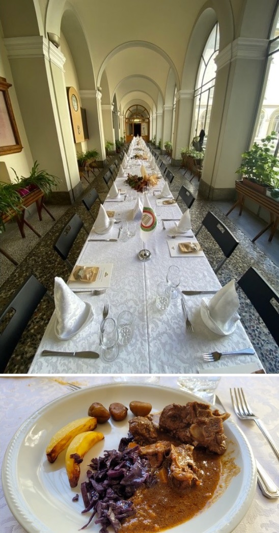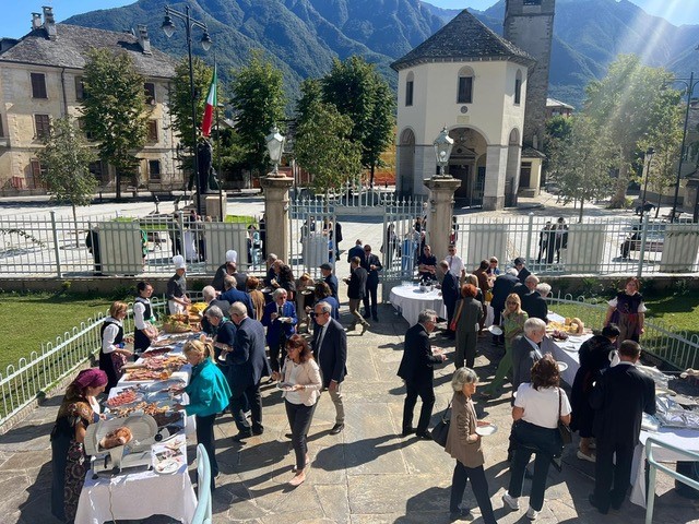 A Domodossola si è svolta con successo la 3ª edizione dell'evento conviviale di Area delle Delegazioni del Piemonte Est. Questa iniziativa, nata tre anni fa, viene organizzata di volta in volta da una diversa Delegazione per far conoscere ai partecipanti la cucina delle tradizioni del proprio territorio e quest’anno è stata anche l’occasione per festeggiare insieme il 70° anniversario di AIC. Organizzata dalla Delegazione Val d’Ossola, ha visto la presenza di 90 persone tra Accademici e ospiti che si sono ritrovati al Collegio Mellerio Rosmini dove, accolti dal Delegato Paolo Rossi, è stato preparato un ricco aperitivo a buffet a base di specialità e rarità ossolane, come ad esempio il tipico formaggio Bettelmatt, il prosciutto crudo stagionato a 2000 metri, lo stinchet (cialda di farina ed acqua cotta alla piastra insaporita da sale e burro), salumi tipici, polenta e funghi; il tutto servito da signore in costume tipico delle valli. A tavola sono stati serviti: gnocchi ossolani di farine di grano, castagne e zucca, tenero spezzatino di cervo cacciato in valle, torta di pane con mirtilli e fiordilatte, il tutto sapientemente illustrato dall’Accademico Gian Carlo Mottini. Una breve sintesi della giornata ed i saluti per un arrivederci alla Conviviale di Area del prossimo anno sono state espressi con soddisfazione dal Coordinatore Territoriale Piemonte Est Piero Spaini, soprattutto per il sentimento di amicizia e collaborazione che ha connotato la giornata. Erano presenti tutti i Delegati dell’Area e il DCST del Piemonte Elisabetta Cocito.