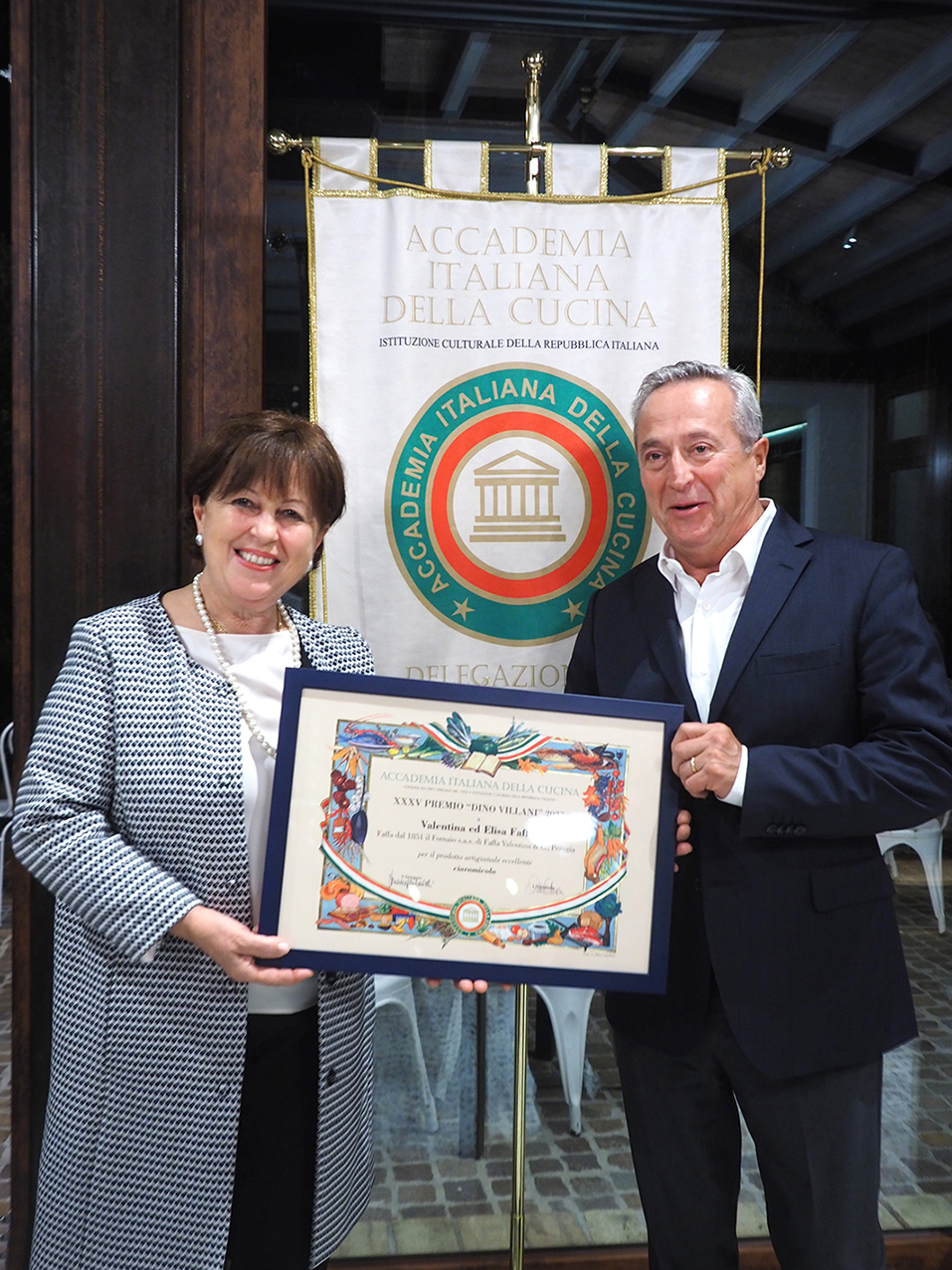 La Delegazione di Perugia si è riunita presso La Locanda Paradiso per consegnare il “Premio Dino Villani 2023” a “Faffa dal 1851 il Fornaio” per la ciaramicola di loro produzione. Il riconoscimento è stato fra l’altro proposto dalla Delegazione per l’attenzione e la cura nelle preparazioni artigianali dimostrata dai Faffa, un’attività che si tramanda in Famiglia da oltre 170 anni. La piacevole serata è iniziata con i saluti del Delegato Massimo Moscatelli che ha elencato le varie iniziative della Famiglia Faffa e ricordando che la ciaramicola, come risultante dalle approfondite ricerche storiche effettuate dall’Accademica Marilena Moretti Badolato, era già presente a Perugia nel 1490, in occasione delle nozze di Giampaolo Baglioni. Il Sindaco di Perugia (foto 1), Avv. Andrea Romizi, ha sottolineato il ruolo trainante delle imprese e dell’artigianato nel tessuto economico e sociale della realtà perugina mentre il Segretario Generale della Camera di Commercio dell’Umbria, Dr. Federico Sisti, si è invece soffermato sull’importanza di organismi “intermedi” come l’Accademia per salvaguardare e valorizzare le tradizioni e le tipicità della cucina. Luigi Faffa ha descritto le antiche origini dell’attività di famiglia, il ruolo di continuità delle figlie Valentina ed Elisa e il merito fondamentale della moglie Antonella nella continua e instancabile volontà di perfezionamento anche di ricette storiche, come quella della ciaramicola (foto 2 e 3).