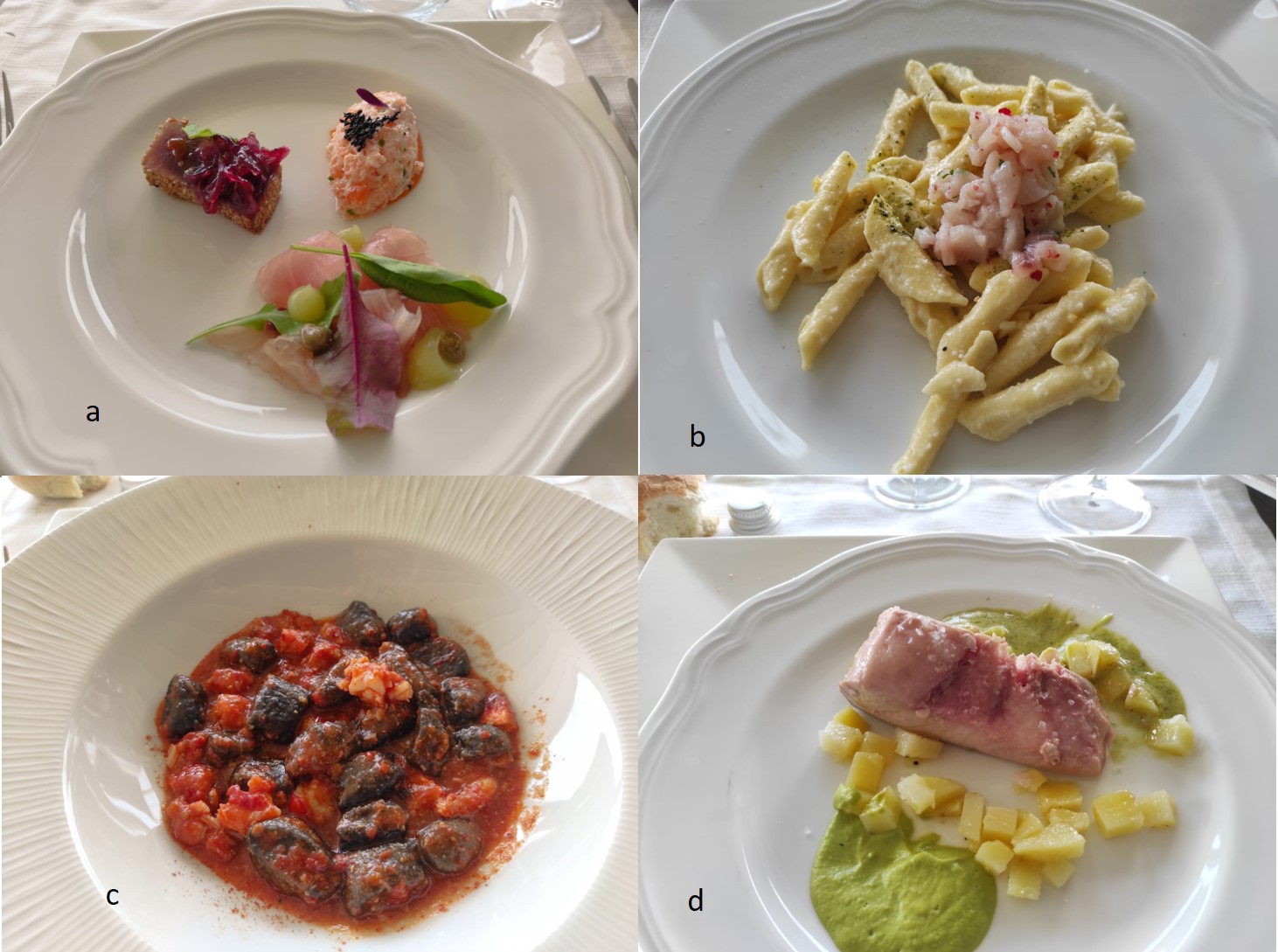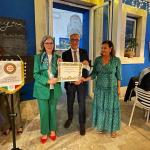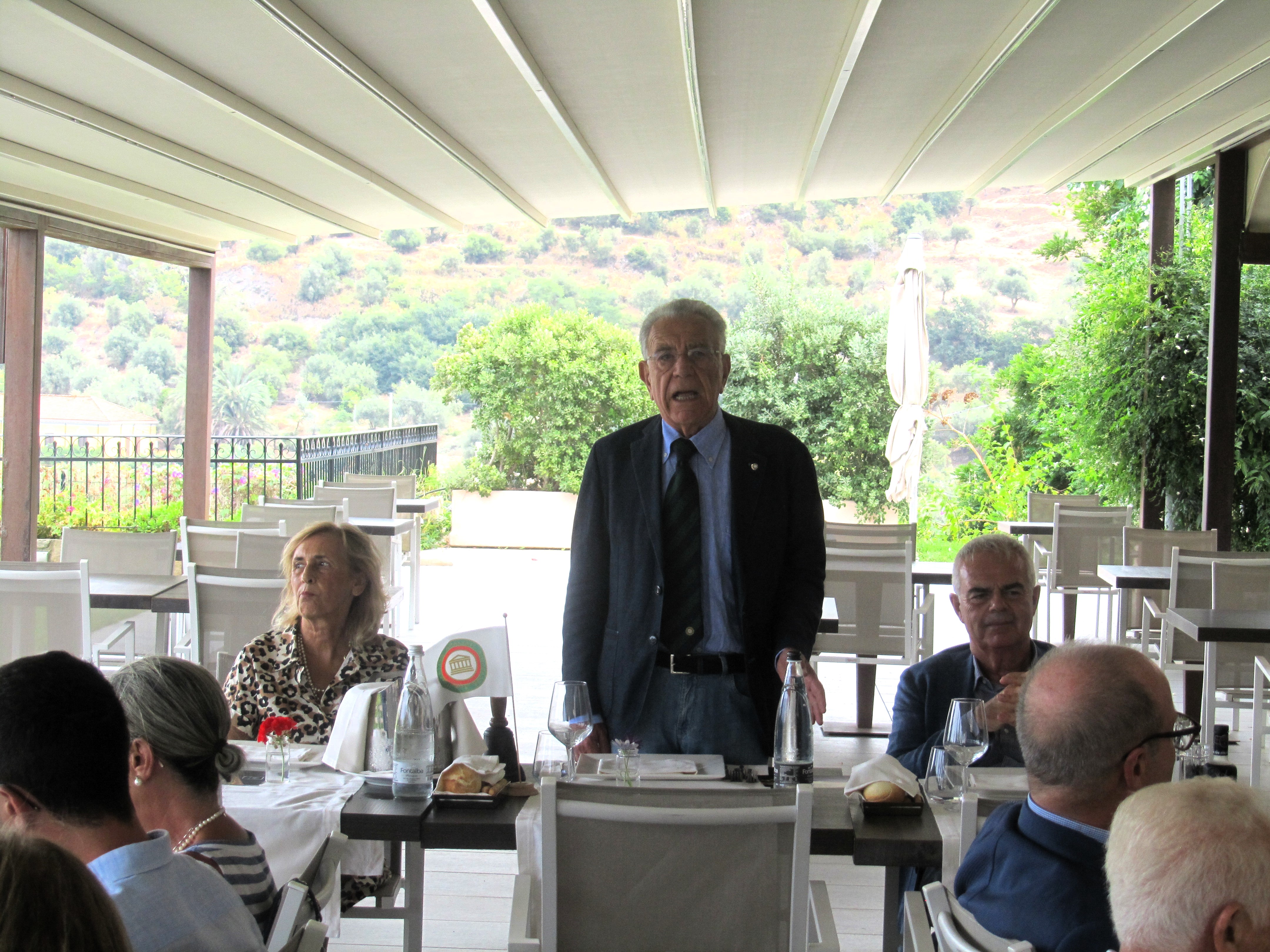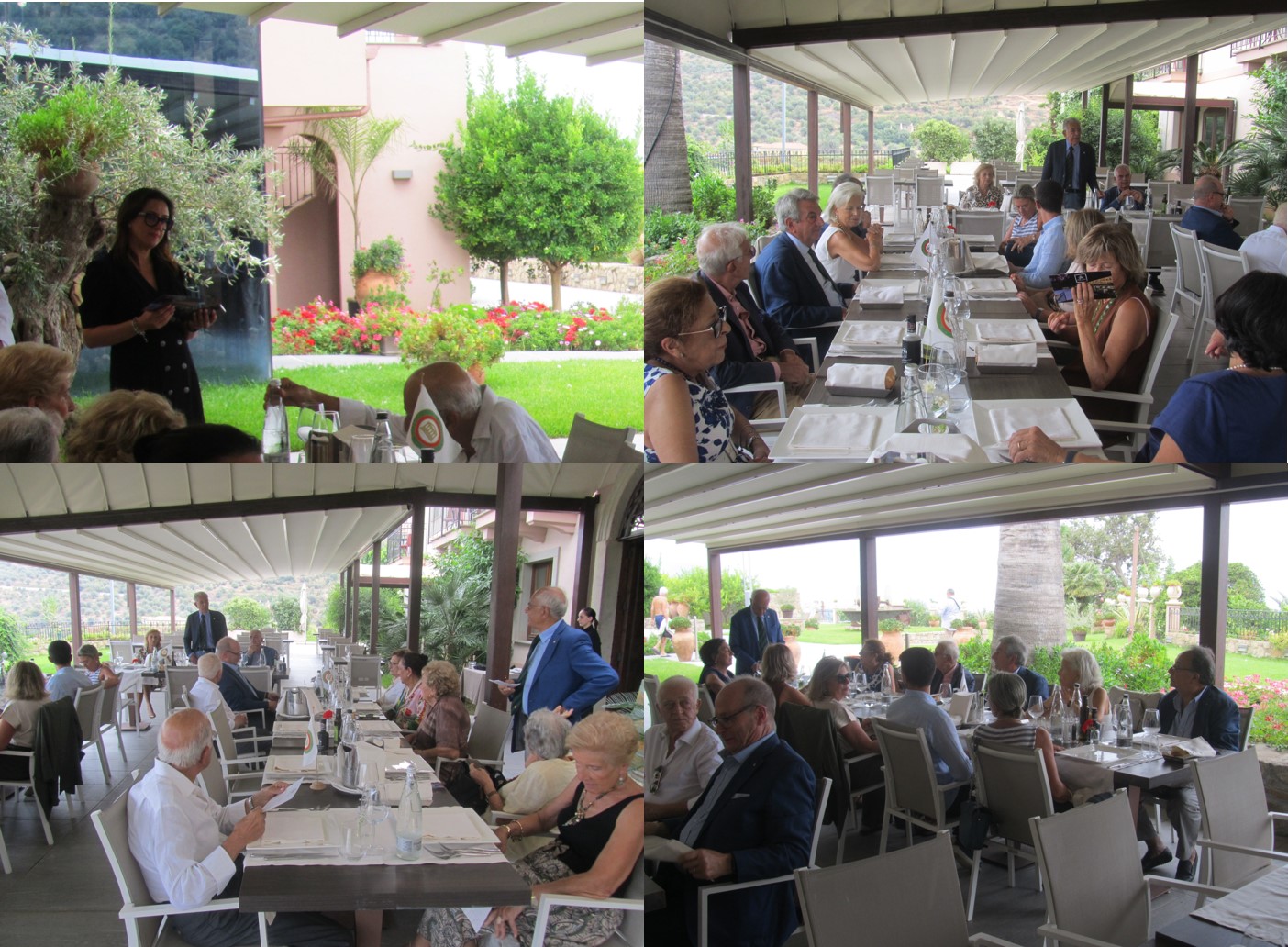 La Delegazione ha visitato il ristorante dell’Hotel Best Western Plus-Terre di Eolo, situato a mezza collina nel territorio di Patti, nell’area tirrenica della Città Metropolitana di Messina. Il raffinato hotel è stato ricavato in un’ultrasecolare casa padronale dominante un vasto uliveto con vista sulle Eolie. La riunione conviviale, voluta dal Simposiarca Giovanni Rossi, è stata introdotta dal Delegato (foto 1), dal Simposiarca, dalla proprietà dell’Hotel e dalla Direttrice Giusy Campochiaro (foto 2) che ha illustrato, seguita dallo chef Joseph Donzì, la filosofia della Casa a una larga rappresentanza di Accademici. Apprezzato unanimemente lo squisito menu con valutazione di eccellenza per gli ottimi antipasti, per i delicati garganelli, per il deciso sapore degli gnocchi al nero di seppia con astice e per la ricciola appena scottata e nobilitata dall’olio della casa, protagonista della cottura (piatti in foto 3). Festosa la foto ricordo per la consegna alla Direzione del piatto d’argento e della vetrofania (Foto 4).