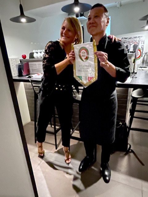 La riunione conviviale con cui gli Accademici di Tokyo hanno iniziato i festeggiamenti per i 70 anni dell’Accademia Italiana della Cucina li ha portati a scoprire un ristorante di recente apertura: Le Api Osteria. Il proprietario e chef, Hide Matsumoto, dopo aver vissuto per oltre 20 anni in Italia ed essere stato oltre 12 anni il sous-chef dello chef milanese Davide Oldani, è tornato in Giappone per avviare questo locale. È stato degustato un ricco menù che ha colpito molto positivamente i commensali. Particolare apprezzamento per i bigoli ai mirtilli con ragù d’anatra e per la frizzante accoglienza dello chef, sempre felice di poter avere nel suo locale italiani e amanti della buona cucina. La cena conviviale è stata l’occasione per festeggiare l’ingresso ufficiale della nuova Accademica Loredana Cesarino.
