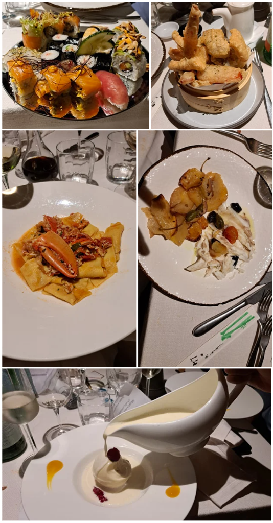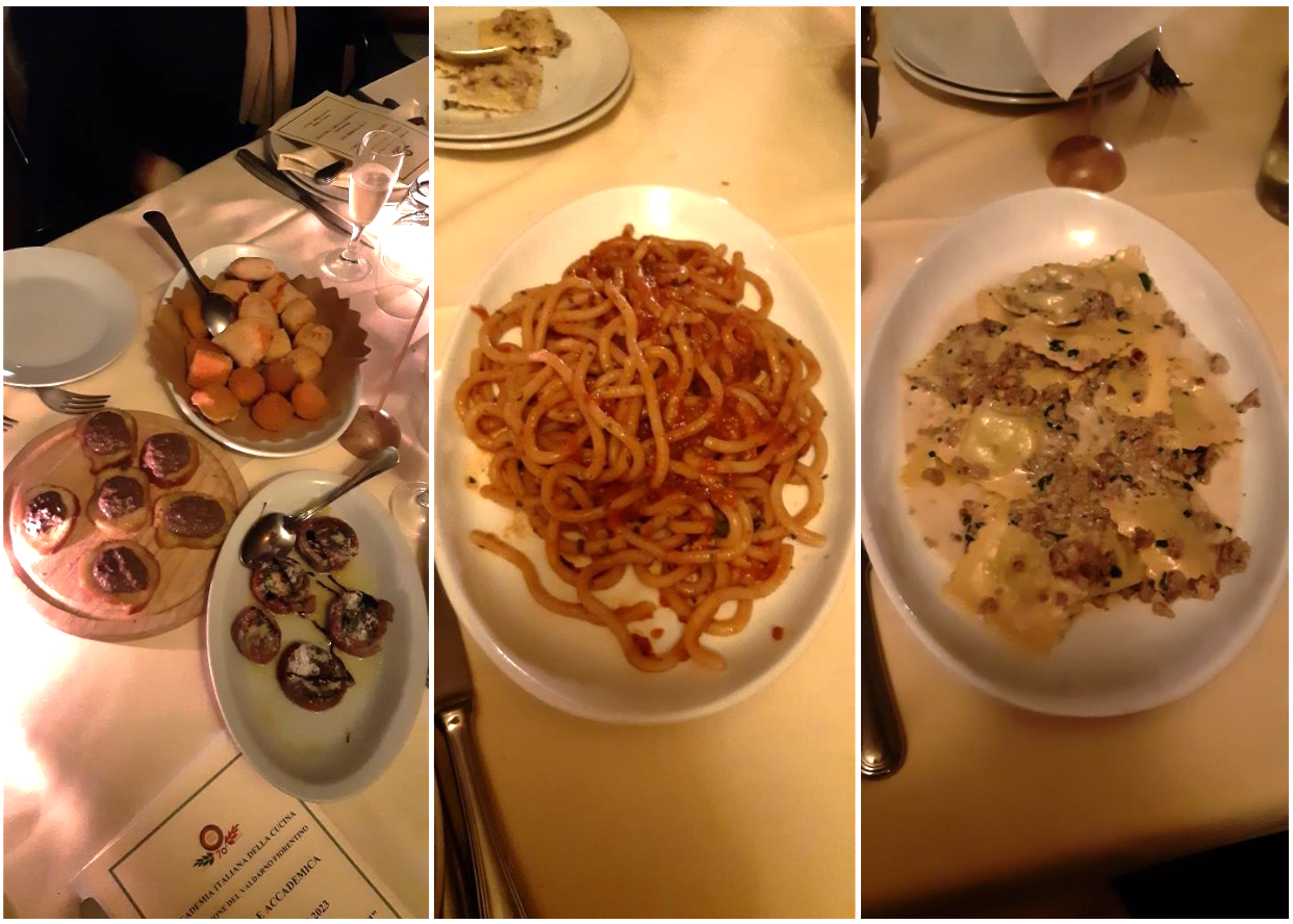 Buona indicazione, subito messa in pratica, quella dell’Accademico Cesare Dami che ha condotto gli Accademici al ristorante La Cascina, un locale di vecchia fondazione (come caffè), negli anni ampliato e trasformato anche in ristorante dall’aspetto gradevole e moderno, affermato anche per la proposta di sushi. Proprio da questo e dal fritto in tempura (di cui abbiam chiarito l’origine) è cominciata la cena che ha avuto l’altro punto di forza nel branzino, davvero eccellente per consistenza e punto di cottura; buono il primo, mentre il dolce è sembrato … un po’ troppo dolce. Un’ottima cena, ben accompagnata dal Greco servito a tutto pasto, e proposta con un servizio lodevole, attento e puntuale, a conferma dell’impegno dei gestori, già rilevato nella fase preparatoria. Ottimo il rapporto prestazione-prezzo. Al termine, il Delegato Giovannini, espressa la generale soddisfazione, ha ricordato l’appuntamento del prossimo 19 ottobre per la Cena ecumenica, adempimento statutario e impegno identitario per tutti gli Accademici, che quest’anno, per la prima volta, si terrà in unione con la Delegazione di Empoli. Circostanze entrambe che raccomandano una significativa partecipazione.