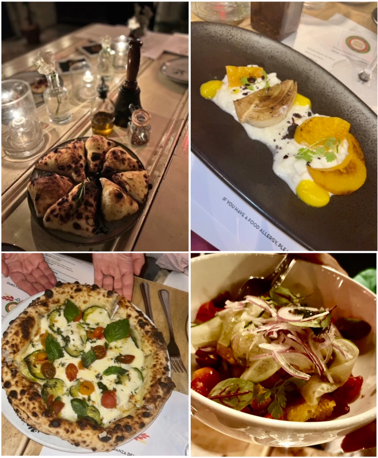 Per la prima conviviale autunnale la Delegazione si è ritrovata presso l’incantevole ristorante Aromi situato a Caroll Gardens in Brooklyn. Nel 2022 i quattro amici Sarah El Gendi di Milano, Andrea Grillo di Bergamo, Alessandro Giannini di Firenze e Lorenzo Pizzoli di Bologna decidono di aprire Aromi dopo 10 anni nella ristorazione a NY, con l‘intenzione di rispecchiare un’autentica cucina italiana rappresentante delle varie regioni da cui provenivano. Per la serata è stato scelto un tema stagionale, “l’abbondanza del raccolto” e il ristorante ha deciso di invitare come ospite lo chef Ivano, originario di un paesino della campagna laziale. La Simposiarca Cristiana Baldeschi ha selezionato con lo chef e il ristorante un menu composto da alcuni piatti forti di Aromi come la focaccia, la pizza e la caponata di melanzane, unitamente ad altri piatti appositamente pensati per il tema della serata. Tra le altre portate, pasta alla Nerano, burrata agli aromi dell’orto con zucca arrosto, chips di zucca, panzanella. Un’esperienza immersiva e di successo sul tema dell’abbondanza del raccolto con piatti eseguiti non solo con gusto e stile ma anche con tanta storia e curiosità. Dimostrazione di grande passione per ingredienti freschi, molti provenienti dall’Italia, e per le ricette e sapori classici della cucina italiana.