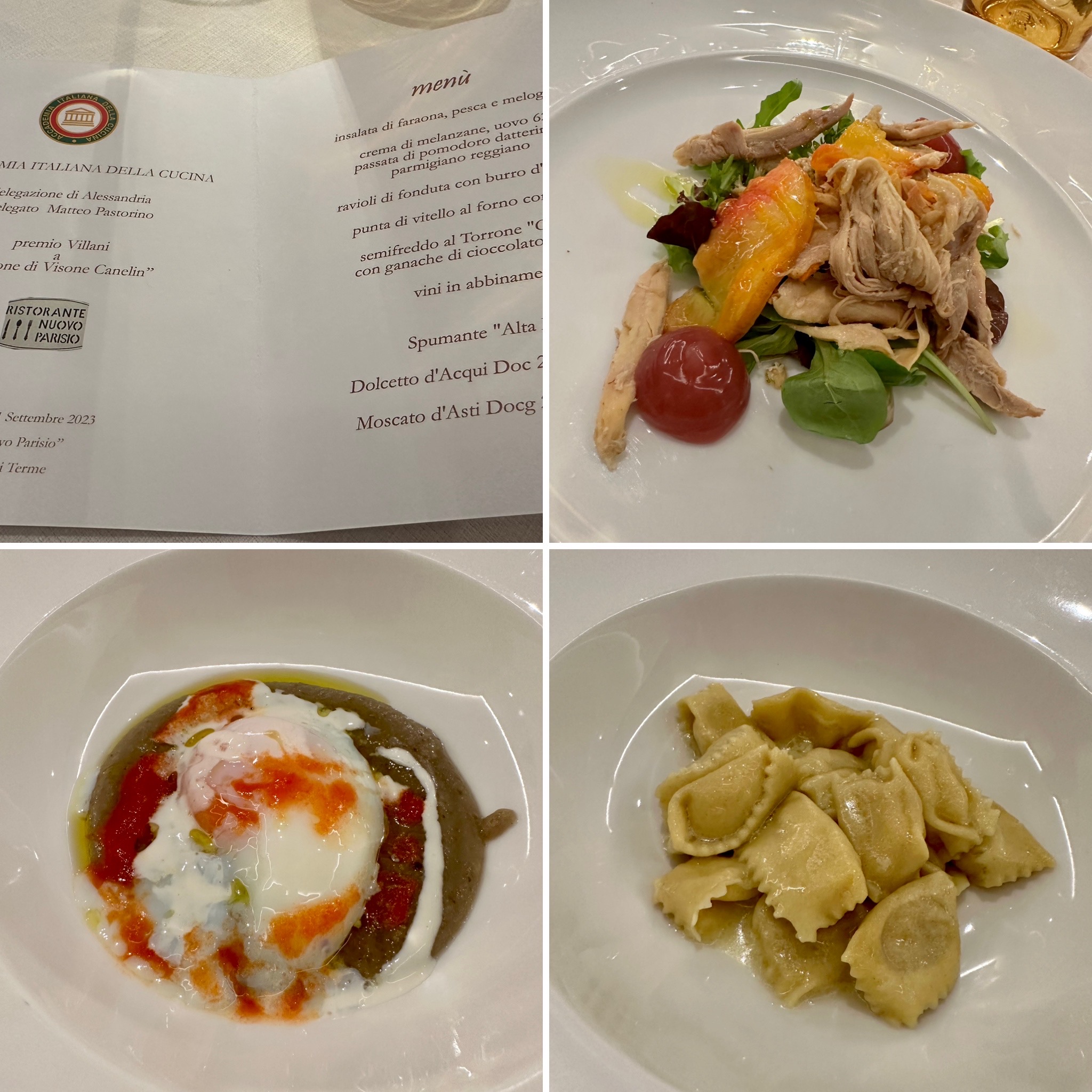 La Delegazione del Monferrato ha festeggiato la vendemmia con una riunione conviviale sulle colline di Albugnano nei pressi della splendida Abbazia di Vezzolano. L’Azienda Agricola Le Tre Colline ha ospitato gli Accademici proponendo un menù a base di prodotti e ricette del Monferrato: particolarmente apprezzati la terrina di coniglio e gli agnolotti accompagnati da una degustazione di vini tra cui l’Albugnano DOC prodotto da uve nebbiolo in un limitatissimo territorio. La sig.ra Cristina in cucina e la figlia Elisa in sala hanno rispettivamente incantato i partecipanti con piatti curatissimi e vini di produzione propria oltre ad una originale proposta di dolci con le nocciole dei loro terreni.