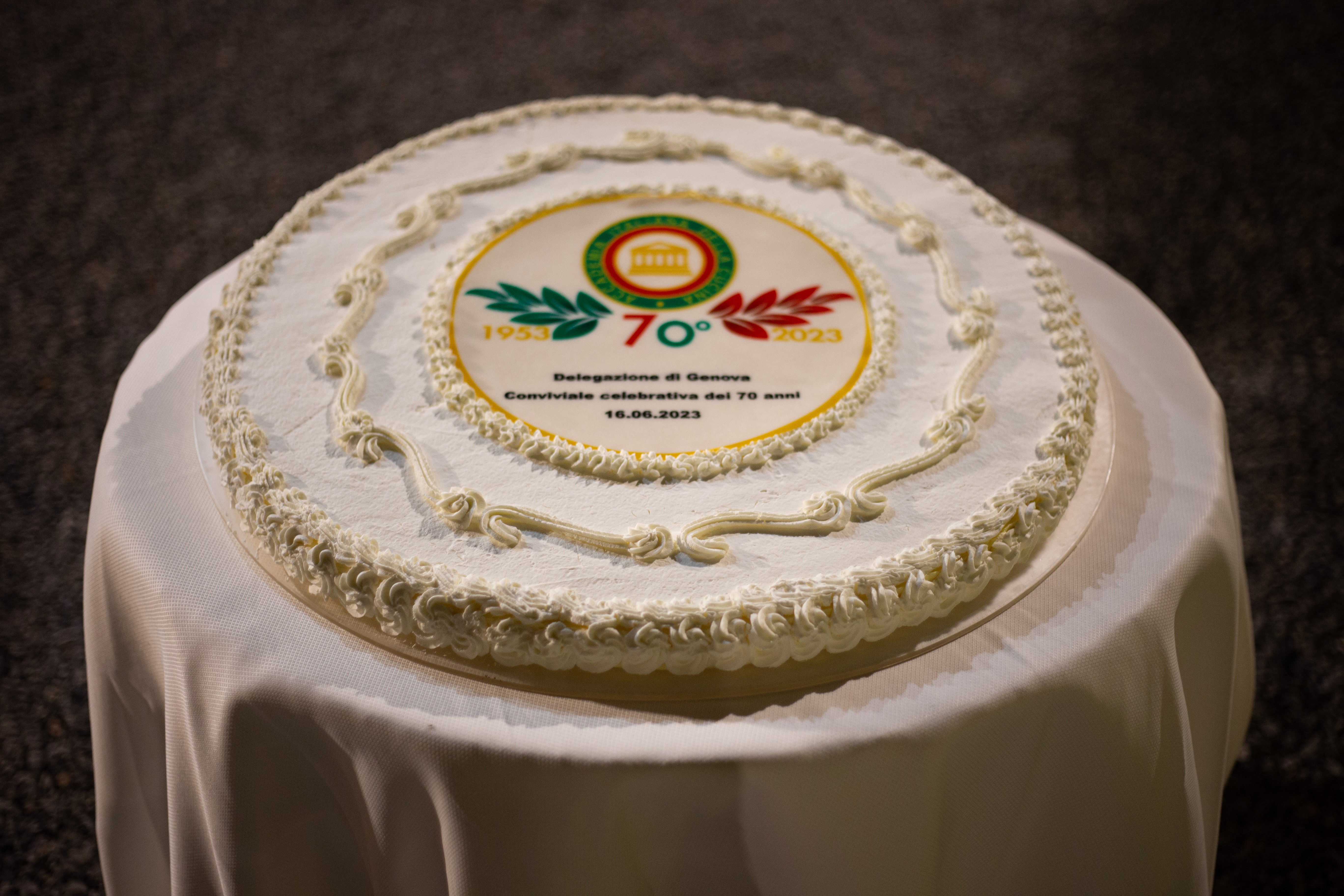 In occasione del 70° anniversario dell'Accademia Italiana della Cucina i festeggiamenti della Delegazione di Genova si sono svolti a Palazzo Interiano Pallavicino, nobile perla di architettura genovese sita nel cuore della città. In occasione della brillante cerimonia che ha visto la partecipazione di Accademici e Delegati provenienti da molte città italiane, il Prefetto di Genova, dott. Renato Franceschelli, è stato ufficialmente insignito del titolo di Accademico Onorario della Delegazione di Genova. Ad anticipare la riunione conviviale, alcuni interventi di relatori della serata introdotti dal Delegato Manuel Macrì: hanno preso la parola i giornalisti enogastronomici Virgilio Pronzati e Marco Benvenuto e il Direttore del Centro Studi Piemonte e Segretario del Centro Studi "Franco Marenghi" Elisabetta Cocito. Il convivio celebrativo è iniziato con un suntuoso aperitivo nello splendido giardino “segreto” del Palazzo, cui è seguita la cena placé nelle sale affrescate con un menù composto da risotto Carnaroli riserva con punte d’asparagi, pesto di nocciole ed erbe di campo, rollè di branzino alle olive nere taggiasche su zuppetta di pomodoro ai crostacei, ed infine la grande torta celebrativa con il logo dei 70 anni di Accademia.