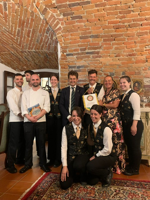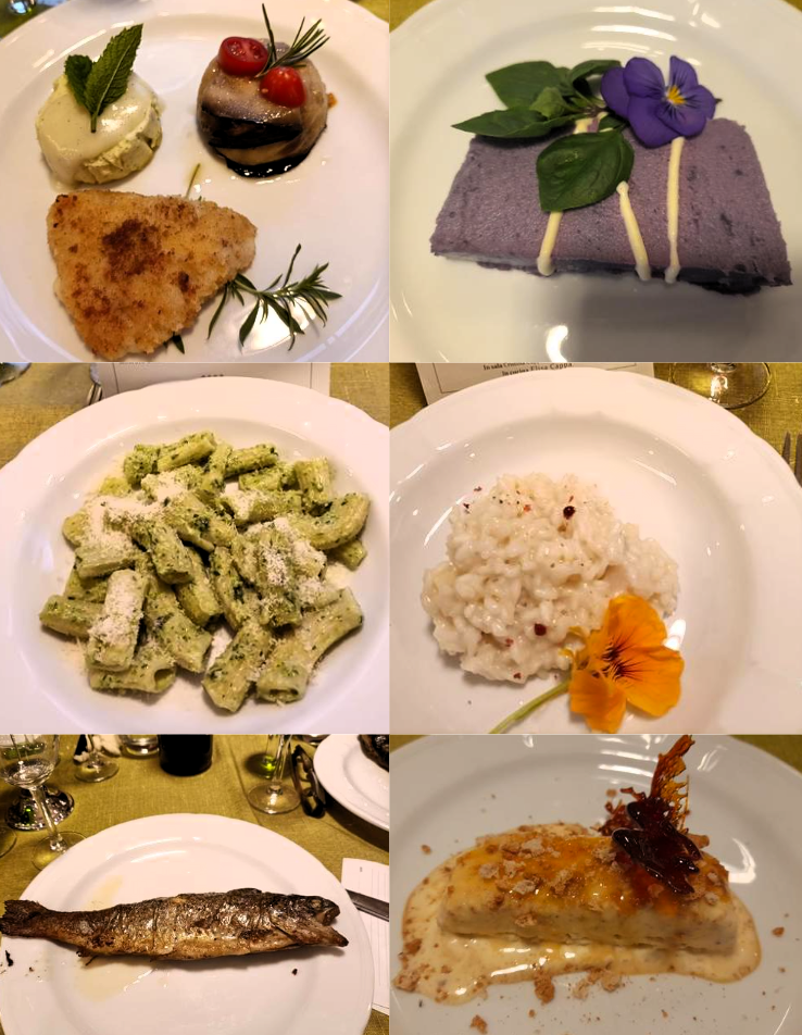 Serata informale di inizio estate in un locale storico della Valle Cervo a una decina di chilometri da Biella: il “Ristorante Asmara”, famoso per le trote allevate nel proprio vivaio e cucinate al burro. Il locale è gestito dalla famiglia Maciotta Blanc da cinque generazioni. La cucina proposta dalla chef Elisa Cappa rimane legata al territorio. Il menu del convivio ha esaltato i prodotti tipici di una zona pre-montana: le verdure dell’orto e i formaggi, oltre ad una pasta fatta in casa, il risotto e la già decantata trota al burro (foto 1). Gli Accademici sono stati accolti in una sala gradevolmente addobbata con fiori di campo e rose (foto 2). Anche i piatti erano decorati con fiori con particolare attenzione al gioco cromatico dei colori. I Simposiarchi Giorgio Lozia e Renato Zorio (foto 3 con Delegata Bertotto) hanno intrattenuto gli Accademici con la storia del locale risalente agli anni 80 dell’Ottocento e dell’origine del suo nome legato ai lavoratori edili in cerca di fortuna all’estero. La serata si è conclusa con i ringraziamenti di rito allo staff tutto femminile di cucina e di sala (foto 4).