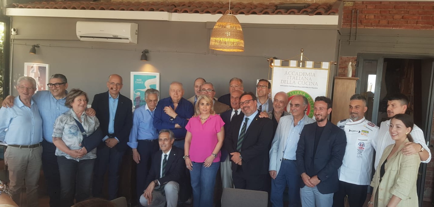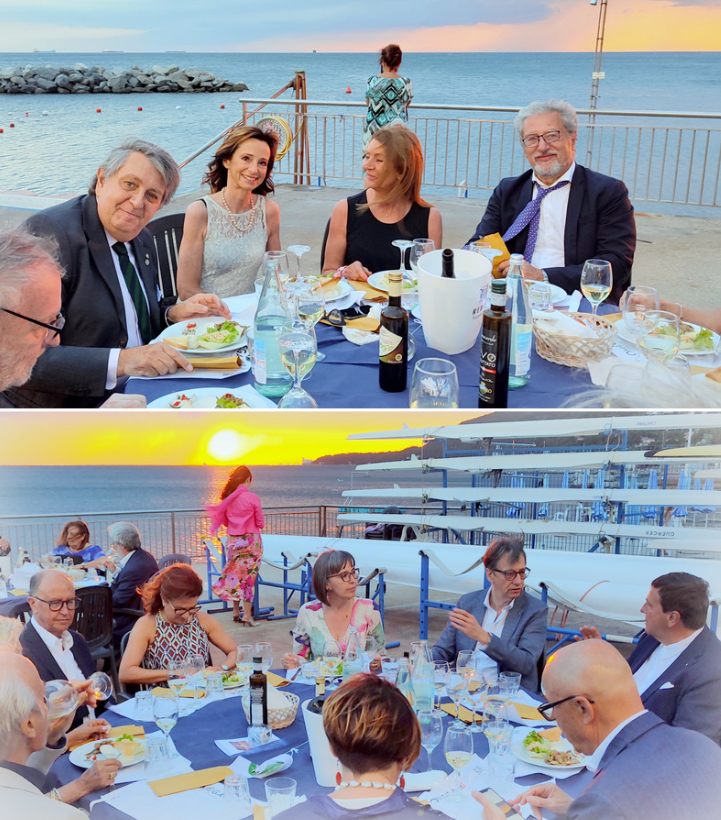 Convivio d’estate come ideale punto di discontinuità rispetto ad una primavera ad andamento lento. L’augurio è che possa essere bella, dai colori brillanti e con intensi profumi di mare, collina e montagna. Simposiarchi per la circostanza, Alfonso Niccoli e Giovan Battista Perciaccante (foto 1). L'occasione è risultata propizia per accogliere in maniera formale Rosina Chimenti, Giuseppe Grimaldi e Maria Carmela Mauceri cui è stato consegnato l’attestato di appartenenza accademica (foto 2). La bella vista sul mare garantita dalla posizione del ristorante La Rotonda, il garbo e la cortesia del servizio e la cucina di mare gustosa e ben equilibrata, hanno ben soddisfatto il desiderio di leggerezza e la ricerca di momenti lieti e di spensierata convivialità dei numerosi Accademici intervenuti (foto 3 e foto 4).