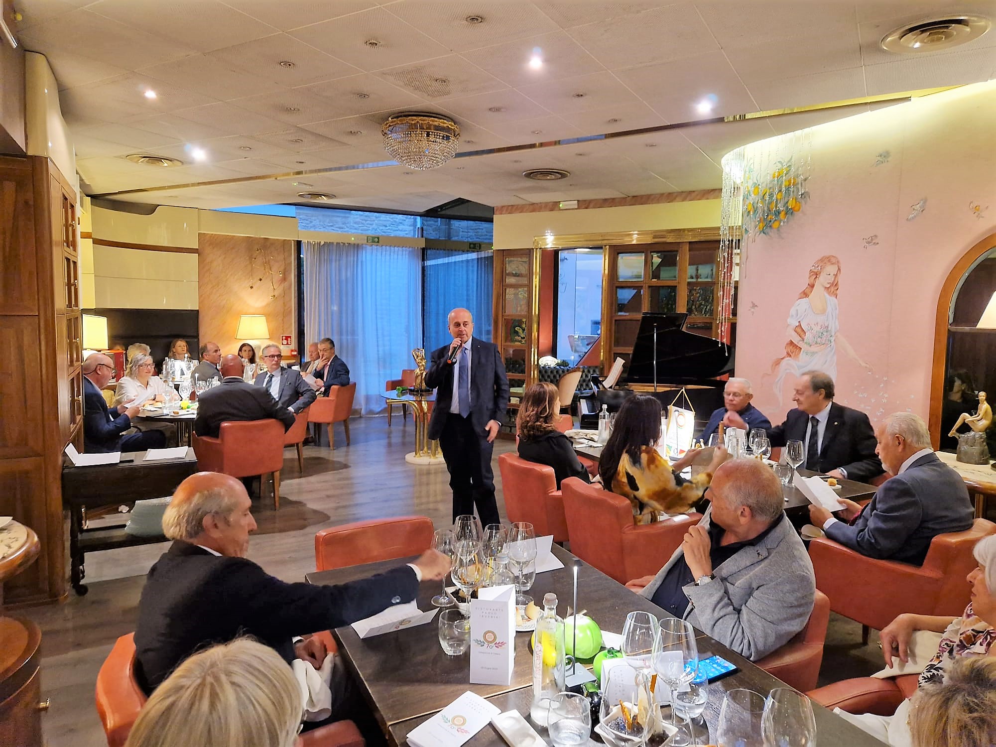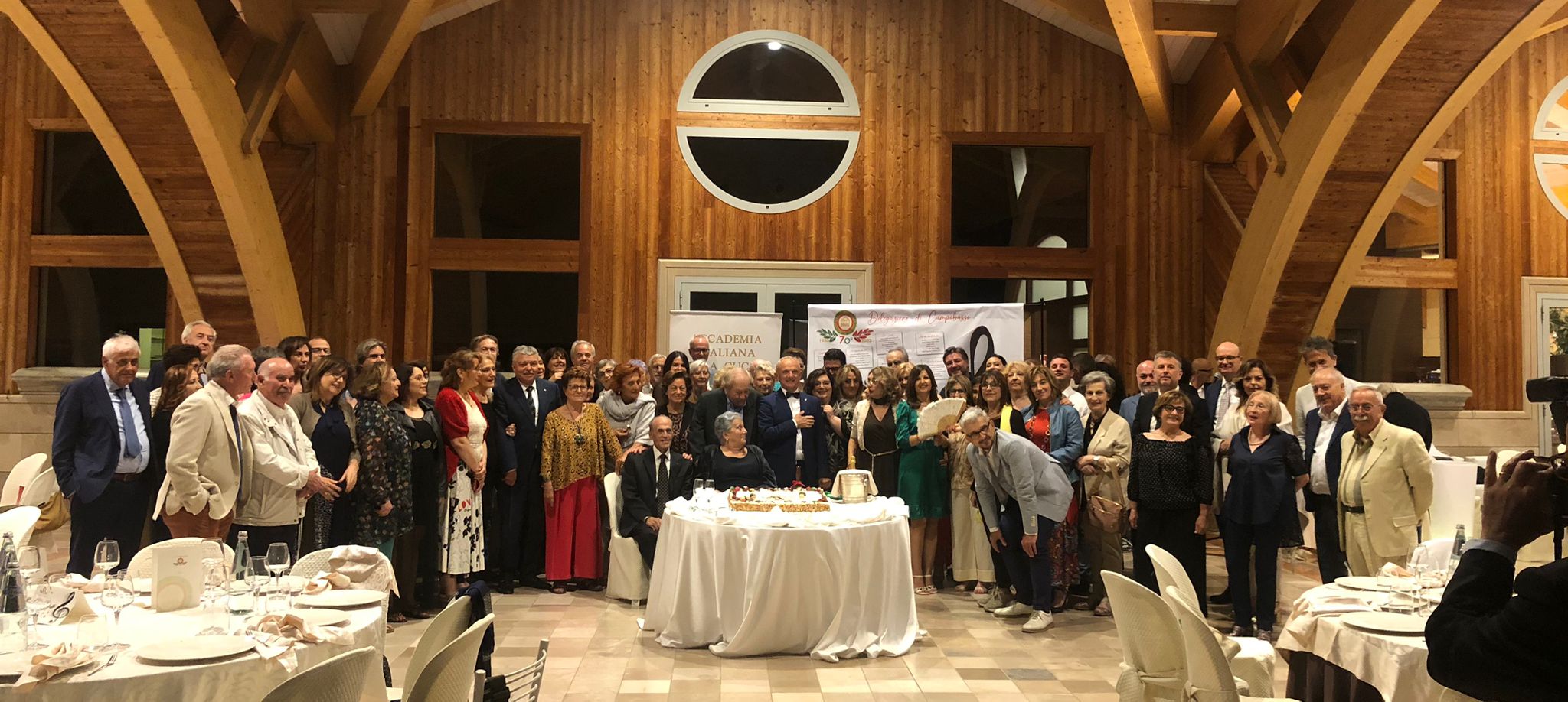 Riunione conviviale “musicale” presso il Coriolis di Campobasso dove, in un’atmosfera di amicizia e allegria, gli Accademici hanno assistito ad una raffinata esibizione canora durante la cena con un menu leggero e intrigante studiato per l’occasione dalla Simposiarca Serena Albanese. Il Delegato di Campobasso, Ernesto Di Pietro. all’inizio della riunione molto partecipata, ha introdotto il tema della serata: come la musica può modificare il modo di percepire il cibo? L’associazione emozionale di una melodia, di una canzone, di un ricordo può influenzare la percezione relativa a ciò che stiamo mangiando? Ha così invitato i presenti a scoprire, in una vera e propria cena esperienziale, se gustare un piatto, doverosamente abbinato ad un buon vino, e ascoltando della buona musica, può evocare giuste corrispondenze e stimolare curiosità. Coinvolgente l’esibizione dei cantanti che fatto sì che si avvertisse forte lo spirito di appartenenza e che ha trovato degna conclusione con il solenne Inno di Mameli al taglio della torta dedicata all’evento. In questa speciale occasione, il Delegato ha voluto enfatizzare una delle tante iniziative messe in campo, a livello centrale, per rendere nota e importante la ricorrenza dei 70 anni di fondazione dell’Accademia annunciando che il Ministero delle Imprese e del Made in Italy ha emesso un francobollo commemorativo dell’Accademia che, a partire da 29 luglio, sarà in vendita in tutta Italia.