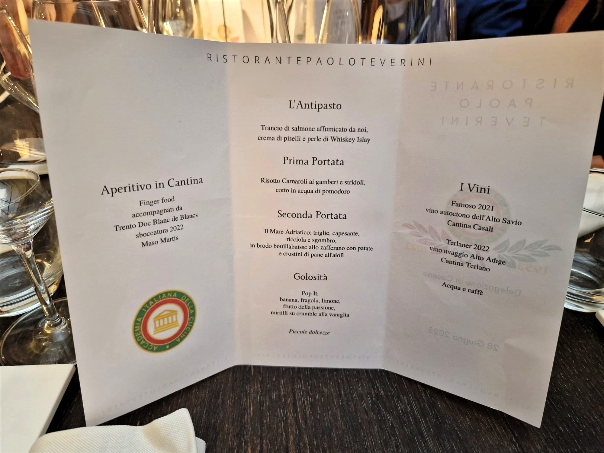 La Delegazione è tornata a far visita al Ristorante Paolo Teverini, un appuntamento sempre ricco di aspettative. Dopo un gradevole aperitivo “finger food” servito nella suggestiva cantina, la conviviale è proseguita nella sala del ristorante dove è stato proposto un accattivante menu di mare curato per l’occasione dal Simposiarca Mario Manuzzi. La sequenza delle portate: trancio di salmone affumicato, crema di piselli e perle di Whiskey Islay; risotto Carnaroli ai gamberi e stridoli, cotto in acqua di pomodoro; il Mare Adriatico: triglie, capesante, riccioli e sgombro in brodo bouillabaisse. E per finire, come dessert, Pop It: banana, fragola, limone, frutto della passione, mirtilli su crumble di vaniglia. I piatti, tutti ben presentati ed equilibrati nei sapori, hanno riscosso il convinto apprezzamento dei commensali. Ottima la scelta dei vini selezionati dall’ampia disponibilità offerta dalla prestigiosa cantina. La serata si è conclusa con un piacevole dibattito sul menu con lo chef Paolo Teverini, sempre generoso nei dettagli della sua cucina, e gli auguri di buona estate.