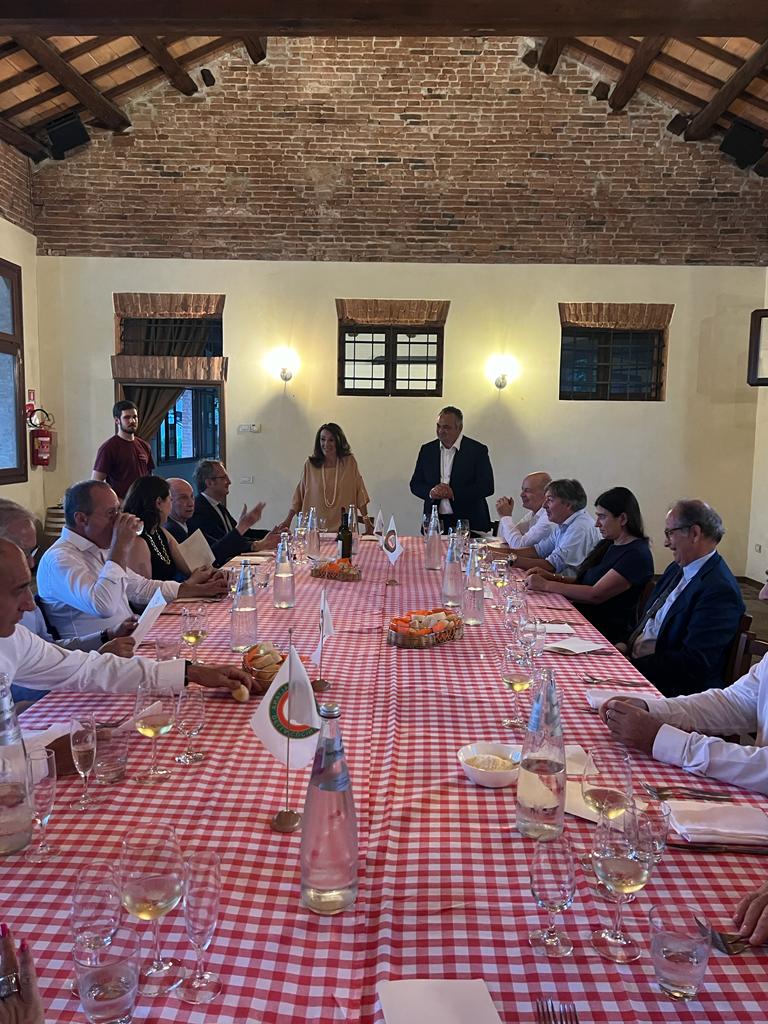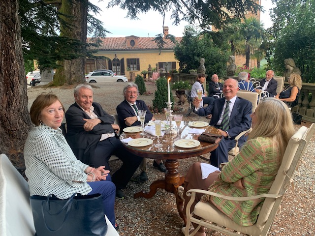 Si è tenuta al castello di Casalborgone, patria del pisello (PAT), la riunione conviviale d’estate della Delegazione del Monferrato. La cornice dello splendido maniero duecentesco ha accompagnato un interessante buffet nel parco, all’ombra dei secolari cedri del Libano. A seguire, nelle sale del castello è stato servito un risotto alle animelle, caprino e fondo bruno; in conclusione è stata servita un’ottima bavarese alle nocciole e lamponi. Calorosa la partecipazione degli Accademici di Novara con il Delegato e Coordinatore Territoriale Piemonte est Piero Spaini.