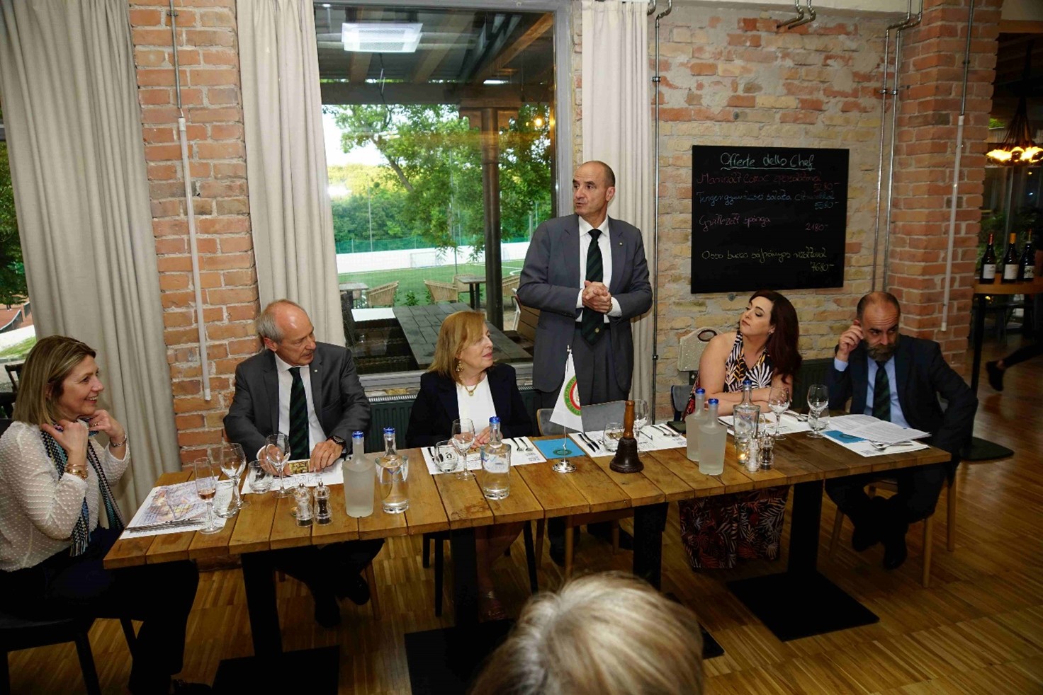 Una simpatica visita al Museo della Pesca di Santa Croce ha preceduto il convivio d’estate, sul Carso triestino, presso l’agriturismo Ostrouska, allietato dal buon cibo e da una leggera brezza che ha reso ancor più godibile la serata. Guido Assereto Simposiarca, Sharon in cucina, un giovane staff di professionisti ai tavoli e prodotti a Km 0 sono stati i protagonisti della serata. Interessanti gli gnocchi alla barbabietola con salsiccia, la tartara di Angus e la lonza di maiale con mela caramellata e pancetta. Vini autoctoni di propria produzione. A fine serata, accompagnato da un caloroso applauso, Gianluca Puppin ha ricevuto le insegne di neo Accademico della Delegazione di Trieste.