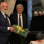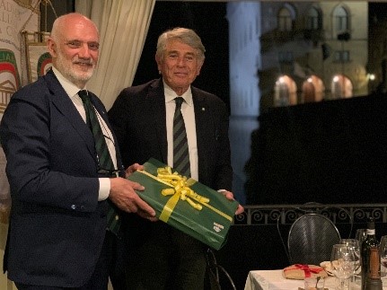 Piacevolissima conviviale congiunta con la Delegazioni di Lodi organizzata dal Delegato della Repubblica di San Marino Andrea Negri presso il ristorante “La Terrazza” di San Marino Città. Un menù scelto appositamente per presentare agli amici di Lodi le ricette del territorio sammarinese con prodotti ed ingredienti locali di qualità. Ad accogliere le Delegazioni, un gustoso aperitivo di benvenuto a base di bignè salati con mousse al formaggio, pinzimonio e focaccine ed un assaggio di un formaggio “barricato” 40/50 giorni con fieni particolari presentato in anteprima assoluta dal Presidente della Centrale del Latte di San Marino, Pino Guidi. Le varie proposte di vino, provenienti dal Consorzio Vini di San Marino, sono state introdotte direttamente dal Direttore Michele Margotti. Antipasto di salumi pregiati dell’Azienda Agricola Zavoli accompagnati da piadine e cassoni. Come primi, passatelli asciutti con goletta croccante, spinaci e fossa e cappellacci verdi ripieni di ricotta fresca di San Marino aromatizzata al limone con pomodorini e basilico. A seguire, un’ottima tagliata di fracosta di manzo di allevamenti sammarinesi accompagnate da erbette di campo e patate agli aromi. Come dessert, gelato alla crema antica variegata al liquore di San Marino “MCM26” e crumble alla mandorla. Una bella serata conclusasi con uno scambio di doni molto apprezzati da entrambe le Delegazioni.