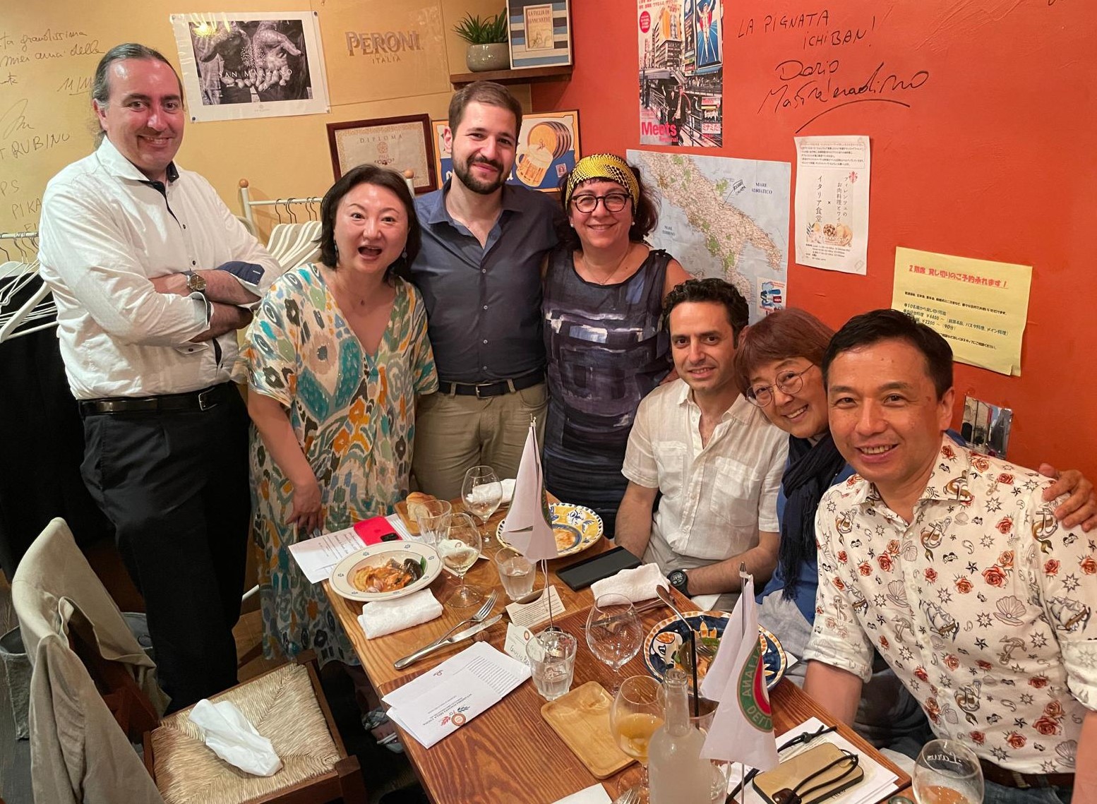 "La Pignata" è uno dei pochi ristoranti italiani dichiaratamente regionali presenti ad Osaka e la Legazione di Osaka e del Kansai l'ha scelto per la Conviviale di giugno sul tema “la cucina pugliese che stupisce, incanta, resta nel cuore”. I 18 partecipanti (massima capienza del secondo piano del ristorante) hanno potuto apprezzare alcuni classici della cucina pugliese guidati dal Simposiarca (e Legato) Francesco Santi Formiconi. Trattandosi di piatti degustati per la prima volta da molti dei convitati, la sorpresa e l’eccitazione per l’effluvio di sapori nuovi e genuini per la robustezza delle porzioni hanno conquistato tutti e la serata si è protratta ben oltre l’orario di chiusura del locale. È stata anche l’occasione per salutare l’Accademica Viviana di Blasi che si trasferisce dal Giappone in Germania.