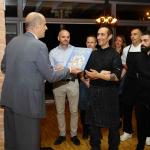 Il Diploma di Buona Cucina 2023 conferito a Maurizio Di Bella, Chef Patron del ristorante Maurizio a Milazzo, è stato consegnato nel corso di una riunione conviviale dedicata, con la partecipazione del Coordinatore della Sicilia Orientale Vittorio Sartorio e introdotta dal Delegato, Simposiarca per l’occasione (Foto 1). Vastissima la partecipazione di Accademici che hanno gremito l’accogliente terrazza riservata alla Delegazione, onorata dall’intervento di Vittorio Sartorio accompagnato dalla gentile consorte (Foto 2). Il menu, rispettoso della stagionalità e della disponibilità del pescato, è stato arricchito da sapori inusuali ed elegantemente presentato evidenziando il 70° anniversario dell’Accademia (Foto 3). La Consulta di Delegazione presente all’evento ha voluto consegnare collegialmente a Maurizio l’ambito e meritato riconoscimento (foto 4).