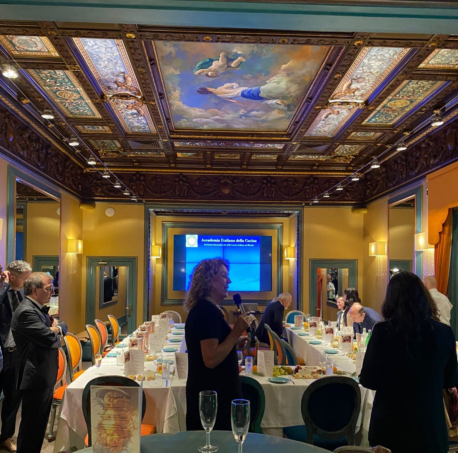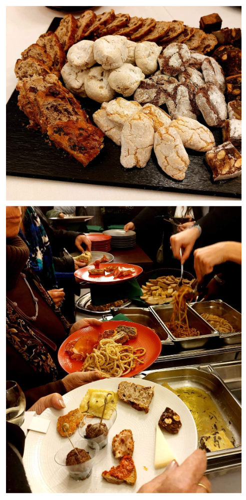 Come ogni anno, la Delegazione è stata chiamata a collaborare con le Istituzioni italiane e francesi presenti a Parigi e in particolare con Il Consolato Generale d’Italia, L’ICE, il Liceo Alberghiero G. Tirel e la Scuola Alberghiera P. Artusi di Chianciano Terme. La giornata è stata dedicata ad un intenso scambio culturale ed enogostronomico tra i differenti attori, offerto ad un folto pubblico. Dopo una master class con allievi nella mattinata, nel pomeriggio è stato trattato il tema della VII SCIM con interventi molto interessanti presentati dai relatori e moderato dalla Tesoriera della Delegazione Laura Adorni. Sono seguiti i saluti istituzionali del Preside Roberto Ghin, della Delegata Laura Giovenco Garrone (foto 2, prima a destra), della Console Generale Irene Castagnoli (foto 3), del Direttore dell’ICE Luigi Ferrelli, e in ultimo, del Direttore del CNA Alessandro Brizzi. Si è così dato inizio alla conferenza con interventi mirati a trattare il tema dell’anno: “Convivialità, Sostenibilità e Innovazione nel rispetto della natura e nella tutela della biodiversità.” Tra i relatori, anche Rosetta Cartella (foto 2, prima a sinistra), membro della Consulta Nazionale dell’Accademia e Delegata di Canicattì. Ed infine, una nota simpatica ha rallegrato la conferenza, la presenza di Massimo Mori, chef ristoratore e Direttore dell’Emporio Armani Café, che ha simpaticamente raccontato le sue esperienze vissute all’estero. Gran finale «Tutti a Tavola dal Contadino» con una copiosa ed interessante degustazione di piatti toscani (foto 4).