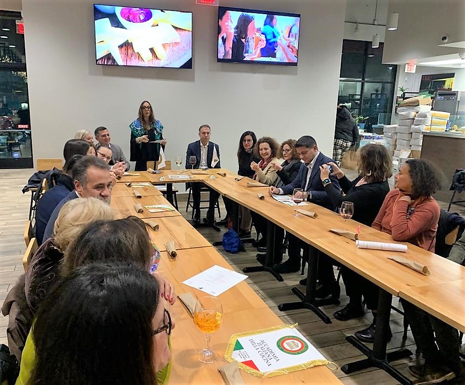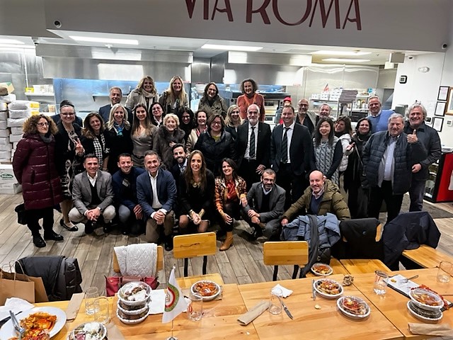 La Legata Maby Palmisano di Washington D.C. ha organizzato un evento in occasione della VII edizione della SCIM presso il locale "Via Roma Pizzeria". L’evento è stato organizzato in collaborazione con l’Ufficio Affari Economici, Commerciali e Scientifici dell’Ambasciata Italiana a Washington, in particolare grazie al contributo della dottoressa Beatrice Ciorba, attaché AGRIFOOD. Alla cena hanno preso parte Accademici, funzionari di Ambasciata tra cui il cons. Edoardo Napoli e tutto l’ufficio Affari Economici, Commerciali, e Scientifici; la dottoressa Paola Agresta, coordinatrice Affari Amministrativi dell’Ambasciata e altre figure di spicco della cultura e scienza di Washington DC. Lo chef Tonino Topolino ha descritto i piatti ed il menu gustoso, tradizionale e al contempo innovativo, che ha seguito il tema della Settimana. Insieme al proprietario Biagio Cepollaro ha poi raccontato come è nata l’idea di portare la Pinsa a Washington D.C. e di come la pizzeria, proprio nella stessa giornata dell’evento accademico, sia entrata a far parte dell’associazione internazionale della Pinsa Romana originale al #192. La serata è stata molto piacevole: la zuppa, tre pinse e il pollo, così come i bomboloni alla nutella, sono tutti stati accolti da grandi applausi.