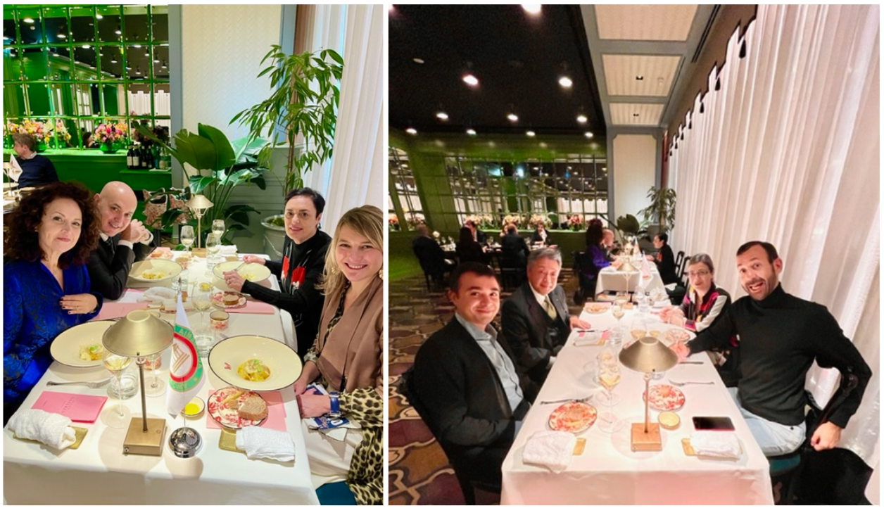 Con la cena presso “Gucci Osteria Tokyo” la Legazione di Tokyo ha concluso la settima edizione della Settimana della Cucina Italiana nel Mondo. Tanti ‘fuori programma’ durante la cena hanno piacevolmente sorpreso i presenti e molte le scelte audaci che hanno fatto discutere i tanti ospiti. Convivialità, sostenibilità e innovazione sono stati il mantra dello chef Antonio Iacoviello che ha interpretato il tema della cena ecumenica accademica “La tavola del Contadino”. Dall'anatra - le cui parti meno nobili hanno insaporito il ripieno dei ravioli mentre il resto ha costituito la portata principale del secondo piatto - alla pasta e ceci che usa solo l'acqua di cottura dei ceci, alla fermentazione delle bucce per dare corpo e sapore, fino al pacchero ai 12 pomodori servito dopo il dolce ad interpretare l’usanza giapponese dello “Shime-no-ramen” (mangiare qualcosa dopo aver bevuto con gli amici). Davvero una esperienza a tinte forti che difficilmente gli Accademici di Tokyo dimenticheranno.