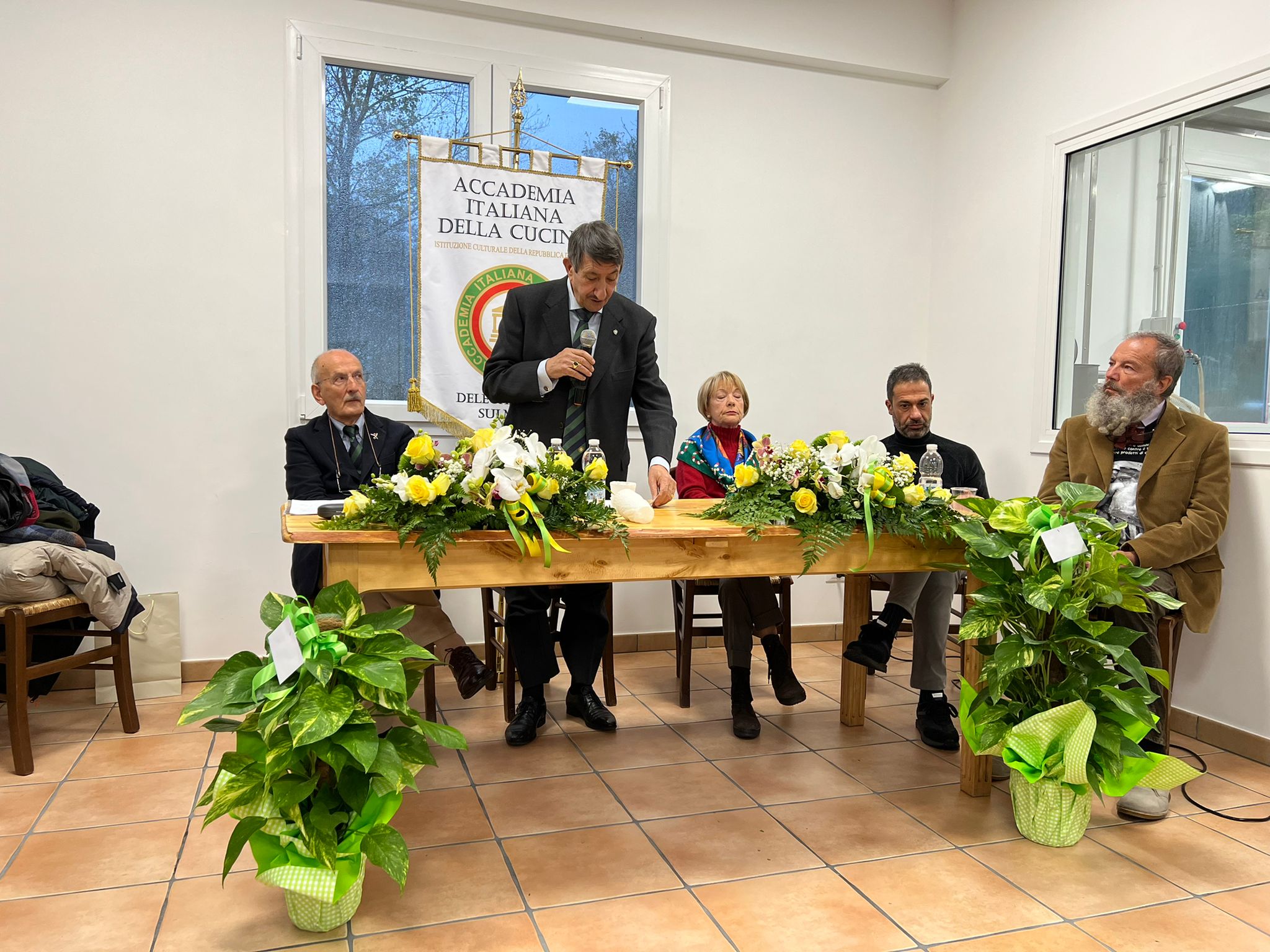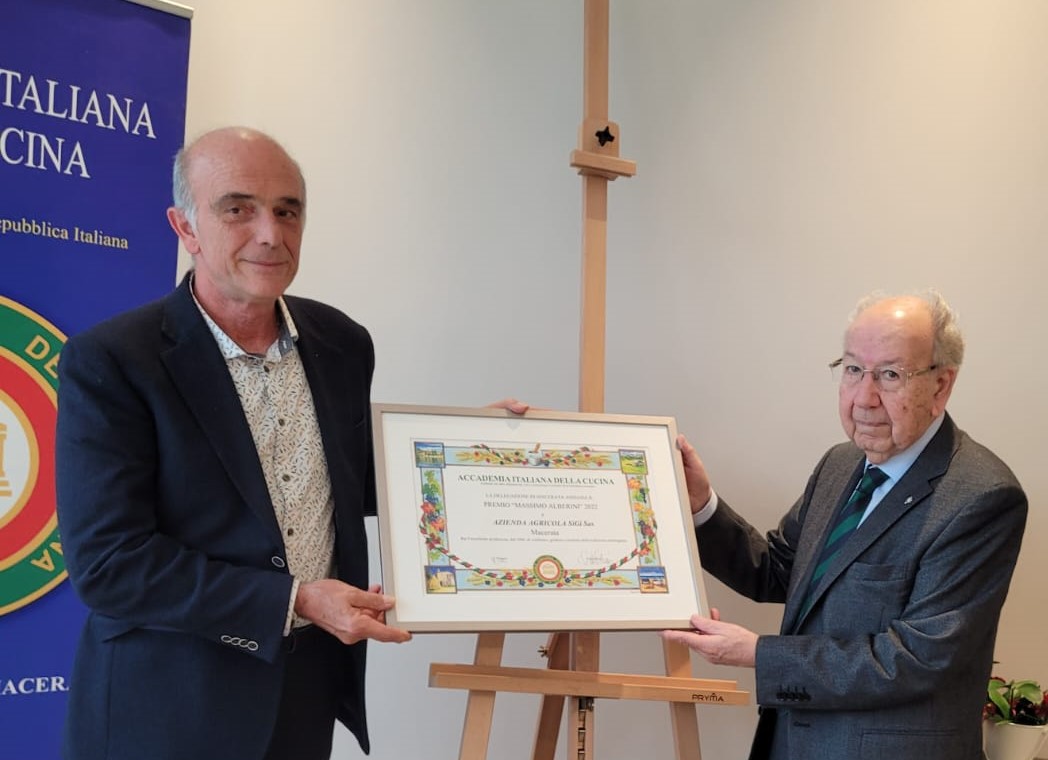 La cerimonia organizzata dalla Delegazione di Macerata per la consegna del Premio “Massimo Alberini” all’azienda Sigi di Macerata si è svolta in un ristorante storico, il “Due Cigni” di Montecosaro. L’Assessore alla cultura del Comune di Macerata, Katiuscia Cassetta, in rappresentanza del Sindaco, e la prof.ssa Lina Caraceni, in rappresentanza del rettore dell’Ateneo maceratese, hanno portato il saluto delle rispettive istituzioni. Altrettanto hanno fatto il Presidente della Confartigianato di Macerata-Fermo e Ascoli, Enzo Mengoni, il Presidente dell’Associazione “Il paesaggio dell’eccellenza”, Domenico Guzzini, il Direttore della Coldiretti, Giordano Nasini, e tutte le altre autorità presenti. Il saluto dell’Accademia è stato portato dal CT Marche e Delegato di Ancona, Sandro Marani (foto 1), intervenuto insieme ai Delegati di Fermo e di Ascoli. Il Premio è stato consegnato al titolare Silvano Buccolini dal Delegato di Macerata, Ugo Bellesi (foto 2), che si è complimentato con l’azienda per i risultati raggiunti in questi anni. La manifestazione si è conclusa con una riunione conviviale a base di piatti della tradizione.