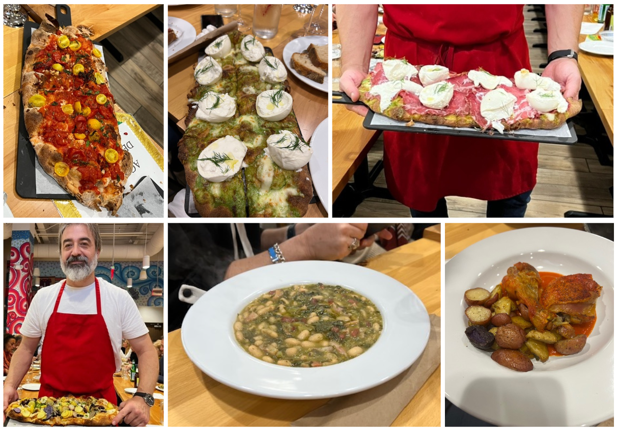 Settimana intensissima a Tel Aviv con focus sulla Puglia, con la con la presenza di una rappresentanza pugliese tra cui il consigliere regionale dott. Alessandro Delli Noci e il direttore di Pugliapromozione Francesco Muciaccia. Tra le tante attività organizzate dalle Istituzioni italiane locali, tra cui l’Accademia, ricordiamo la Cena di premiazione organizzata dalla Delegazione presso il ristorante Ernesto 90 che ha ricevuto il Diploma di Buona Cucina 2022 (foto 1). Lo chef ha preparato un particolare menu pugliese e i Simposiarchi Nessia Laniado e Massimo Lomonaco hanno approfondito il rapporto tra la cucina pugliese e cucina ebraica. In questa occasione è stato anche trattato il tema ecumenico accademico "la tavola del contadino" presentando ricette pugliesi semplici e sostenibili (foto 2 un momento conviviale). E ancora, cena di gala realizzata dallo chef di origine pugliese Felix Lo Basso in cooperazione con il master chef Massimiliano di Matteo nella Residenza dell'Ambasciatore d'Italia S.E. Sergio Barbanti. Altro evento che ha visto la Delegazione protagonista, colazione accademica con premiazione al caseificio Ivry premiato con il premio Alberini 2022 (foto 3 con la Delegata Cinzia Klein). Foto 4. I piatti preparati dallo chef Felix Lo Basso e ultima a destra la burrata del caseificio Ivry.