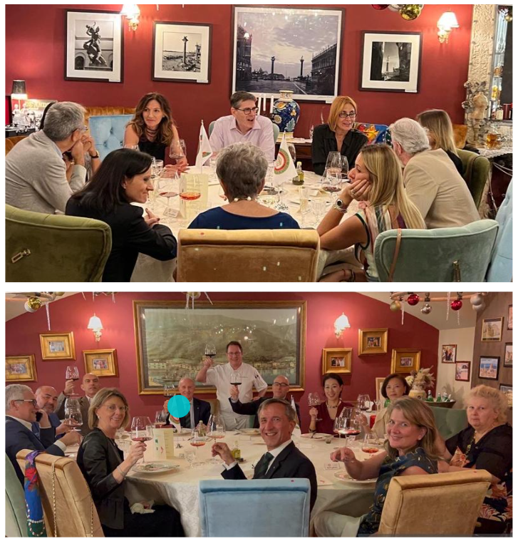Lunedì 14 novembre, nella sala delle barriques del Consorzio dei Vini della Repubblica di San Marino, alla presenza di S.E. Sergio Mercuri Ambasciatore d'Italia a San Marino, Leo Marino Morganti già Delegato di San Marino, il Delegato Andrea Negri e gli Accademici sammarinesi hanno incontrato i titolari e gli chef dei ristoranti del territorio illustrando le finalità della Delegazione nata negli anni '80, le attività svolte e l’idea per celebrare la “Settimana del 2022” invitando i ristoratori ad inserire, dal 14 al 20 novembre, un menu a tema specifico. Nel corso della settimana, sono state infatti organizzate numerose riunioni conviviali per promuovere e degustare le proposte dei ristoratori intervenuti. Un interessante pomeriggio di confronto, approfondimento e dialoghi vivaci su temi di grande attualità, molto apprezzato da tutti i partecipanti. Foto 1. Da sinistra, Delegato Andrea Negri, S.E. Ambasciatore Sergio Mercuri, Leo Marino Morganti. Foto 2. Ristoratori e chef. Foto 3. S.E. Ambasciatore Sergio Mercuri e la Consulta della Delegazione (da sinistra: Cesare Tabarrini, Andrea Negri, Elisabetta Righi Iwanejko, l'Accademica Ilaria Cecere e Stefano Piva).