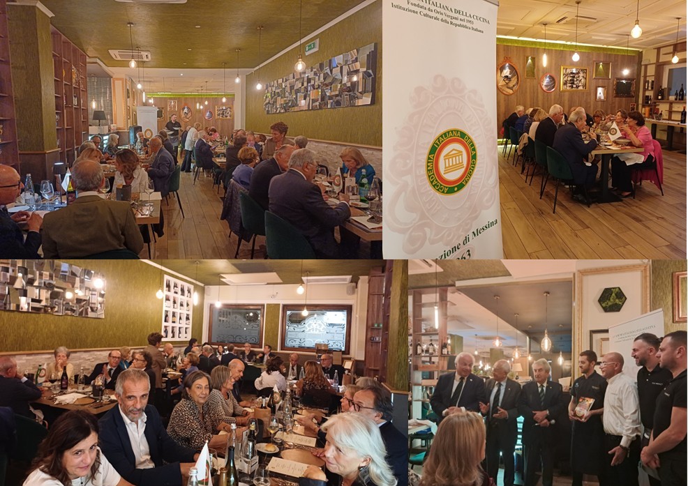 Per celebrare l’Ecumenica 2025 gli Accademici si sono ritrovati al Toronero, ristorante bisteccheria, visitata in passato e dove fu celebrata l’Ecumenica 2019 (sul tema pasta fresca ripiena e gli gnocchi). Il ristorante, guidato dai patron Francesco Vinci e Fabrizio La Rosa, si è raccontato attraverso le peculiarità della cucina dello chef Mirko Cannata con piatti della tradizione a base di carni di qualità. Il Delegato ha presentato il tema dell’anno e il componente il CST Sicilia orientale, Saverio Pugliatti, ha illustrato i contenuti delle declinazioni regionali oggetto del XII volume della Biblioteca di Cultura Gastronomica. Sono stati serviti: flan di zucca rossa con colatura di Parmigiano 24 mesi alla zafferano, bottoni di pasta fresca farciti con stracotto di manzo, fondo bruno, petali di pomodoro e pecorino siciliano. Particolarmente apprezzato il bollito ammollicato ricordo di un’antica ricetta messinese “canni bugghiuta e ‘rrustuta”, che gioca il suo appeal su contrasti e consistenze: morbido dentro e croccante fuori con l’abbrustolito della carne grigliata che si sposa alla dolcezza di quella bollita. Dopo la grigliata con braciole alla messinese e l’arrosto di scottona siciliana, la torta Ecumenica al limone della pasticceria Ragusa. La scelta del menu e della cantina è stata condivisa dagli Accademici e approvata dal Delegato e dalla Consulta, con la consegna della vetrofania e del volume tematico dell’Ecumenica.