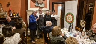 Per celebrare la Cena Ecumenica gli Accademici si sono ritrovati a Villa Cerreto nella frazione di Ronta a Borgo San Lorenzo (FI). Di proprietà della famiglia Marrani che, giunta alla quinta generazione, gestisce l’omonimo ristorante, la villa è stata riservata per l’occasione alla Delegazione. Dopo l’aperitivo di benvenuto, il tema dell’anno è stato pregevolmente illustrato dal Vice Delegato Renzo Bartoloni, membro del Centro Studi Toscana Est, che ha evidenziato le tante preparazioni tipiche del territorio, soprattutto di arrosti e ancor più di umidi, anche come riuso delle carni avanzate. La brigata di cucina ha sapientemente interpretato il tema con un menu comprensivo delle varie gustose preparazioni di carne: dalla lingua bollita con la sua delicata salsa verde al cappone del ripieno della squisita pasta in brodo, dal saporito ragù di capriolo per le pappardelle alla rosticciana in umido con le biete per finire con un sontuoso carré di vitella arrosto. Una serata che ha riscosso l’alto apprezzamento degli Accademici, presenti nella quasi totalità, e dei numerosi ospiti tra cui l’Accademico di Shanghai Maurizio Lupi con la moglie Manuela. Con i ringraziamenti anche per la bellissima accoglienza, la Delegata ha consegnato in dono ai ristoratori il Volume della Biblioteca di Cultura Gastronomica e il piatto dell’anno.