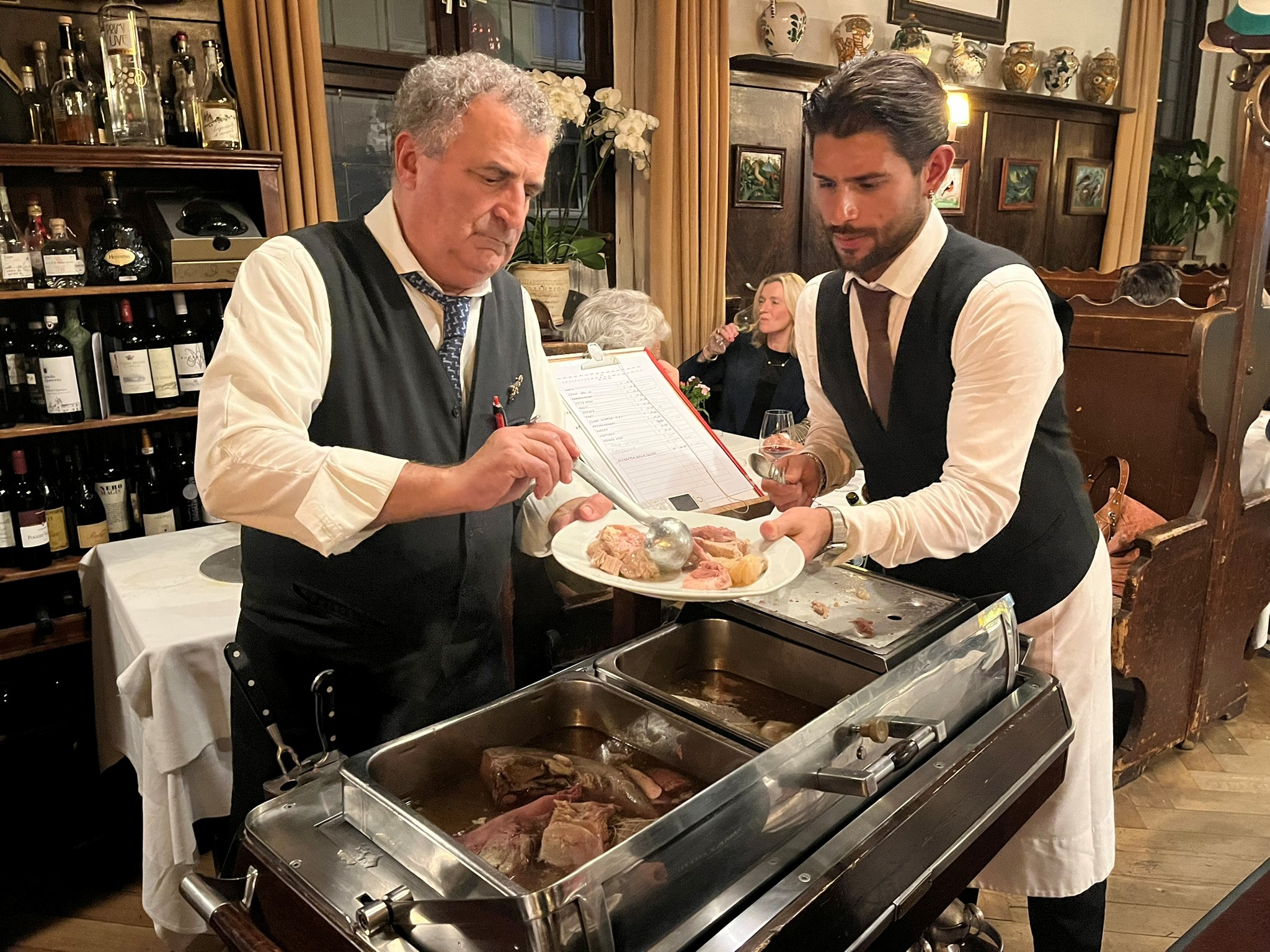 Splendida Cena Ecumenica 2025 dedicata ad "Arrosti, Umidi e Bolliti" presso il ristorante modenese La Bianca, da sempre rinomato per i suoi carrelli colmi dei classici bolliti della tradizione. Dopo un’entrée di tortellini in brodo di cappone, servita “per aprire lo stomaco al pasto”, gli Accademici hanno potuto scegliere tra i vari tagli: manzo, lingua, testina, zampone, cotechino, cappello del prete, accompagnati dai tradizionali purè di patate e spinaci. I fagioli in umido con le cotenne, proposti come omaggio al tema dell’anno, si sono rivelati di una bontà squisita. Augusto Ascari, rappresentante della Delegazione nel Centro Studi Territoriale Emilia, ha presentato la pubblicazione 2025 dedicata all’argomento, seguita dalla distribuzione del volume a cura di Marco Righi. Il padrone di casa Giuseppe Tartarini, anima de La Bianca, ha voluto rendere omaggio al tema servendo anche la sua celebre arista di maiale arrosto con patate al forno, piatto “espresso” richiesto dal Delegato e Simposiarca della serata Mario Baraldi. Un delizioso gelato di crema con amarene ha concluso una Cena Ecumenica da ricordare. Nel saluto finale, il Delegato ha ricordato l’impegno dell’Accademia Italiana della Cucina nel sostenere la candidatura della Cucina Italiana a patrimonio immateriale dell’UNESCO.