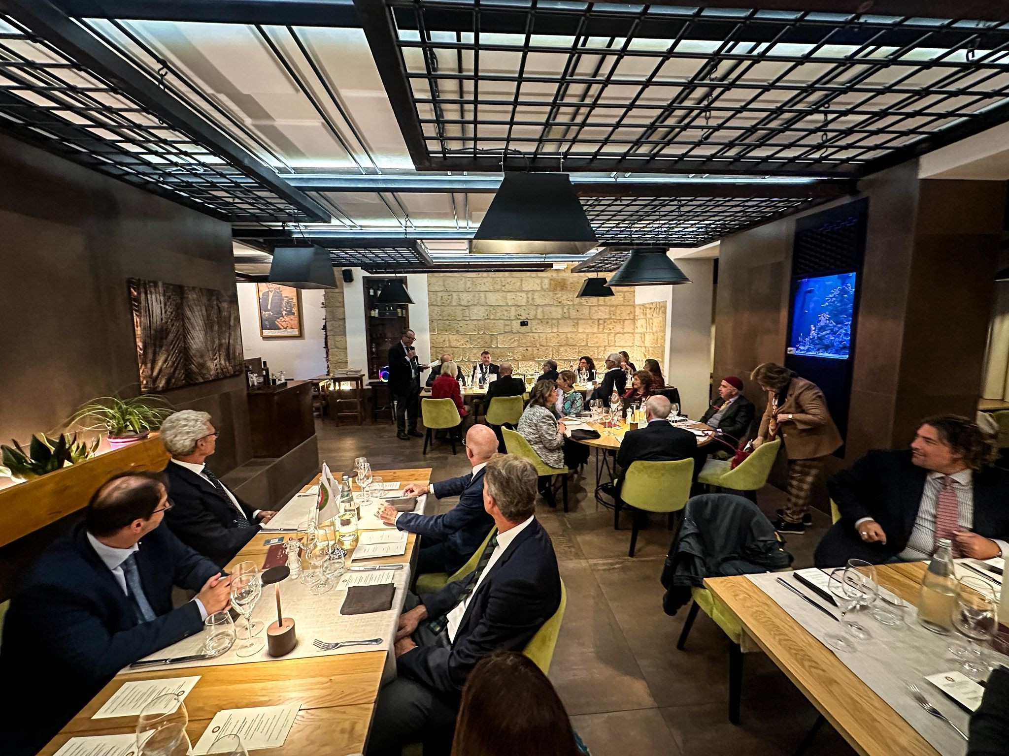La cena ecumenica di Tel Aviv si è svolta presso il ristorante Ernesto 90, con la cucina dello chef italiano Emanuele di Porto. L’evento è stato organizzato con un menù ispirato al tema di quest’anno, "gli arrosti, gli umidi e i bolliti". Durante la serata sono stati distribuiti libri accademici sull’argomento e uno di essi è stato donato al proprietario, Ernesto Marcheria, che da oltre vent’anni promuove il vero cibo italiano romano a Tel Aviv. L’Accademica Nessia Laniado ha condiviso aneddoti riguardanti arrosti, umidi e bolliti nella tradizione culinaria italiana. La scelta del ristorante Ernesto 90 per la cena ecumenica è stata motivata dalla sua reputazione come locale rappresentativo, in grado di offrire un autentico menù italiano di carni. Lo chef ha proposto come antipasto lingua salmistrata in salsa verde; per primi, tortellini in brodo e pappardelle al ragù con funghi porcini; per secondi, manzo, pollo e lingua bolliti, stracotto come umido e arrosto di manzo; infine, a conclusione della cena, crème caramel, il tutto accompagnato da Montepulciano d’Abruzzo. La serata si è rivelata molto riuscita, con la partecipazione di numerose personalità della vita pubblica di Tel Aviv e con la presenza di quasi tutta la Delegazione.