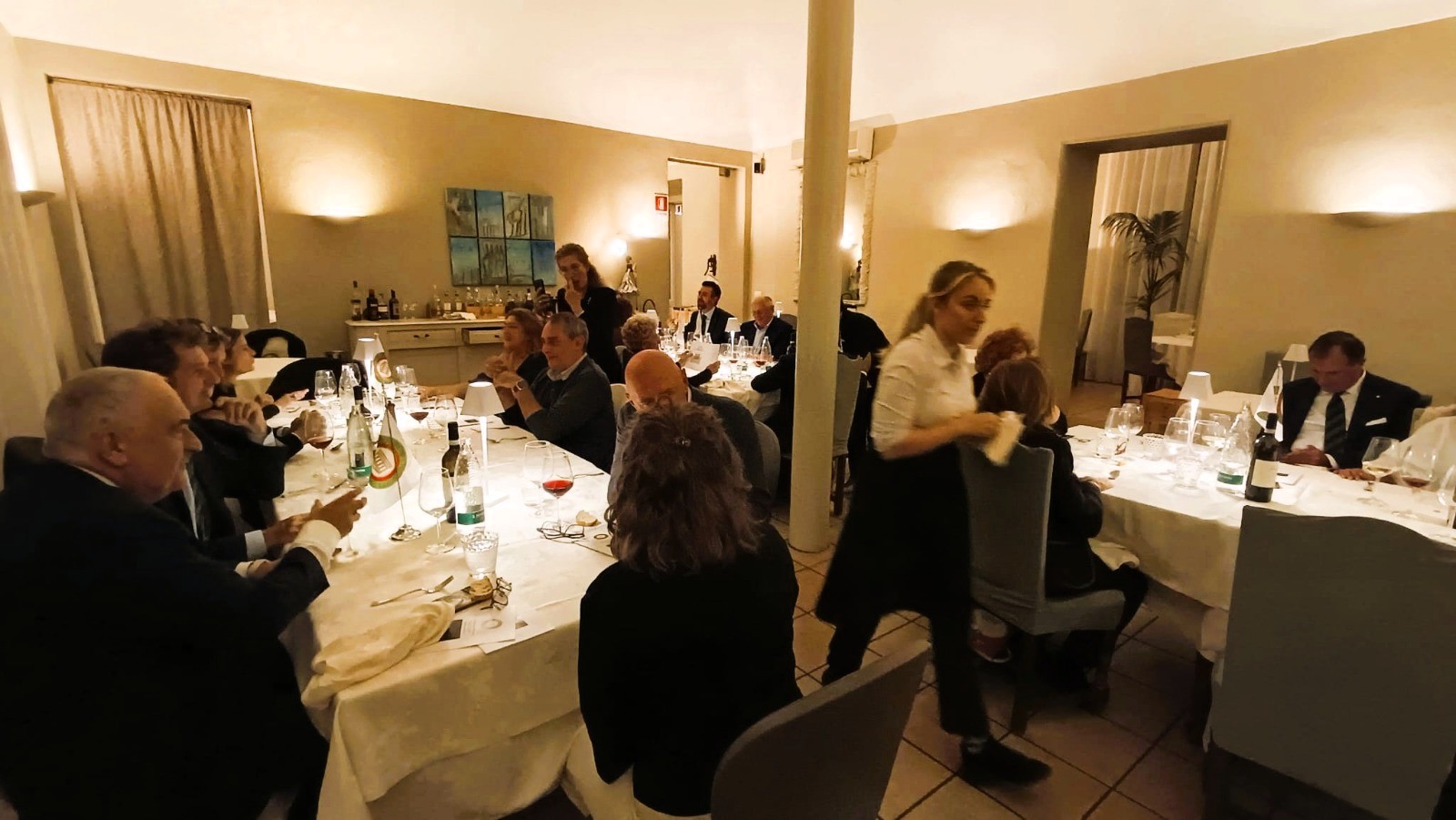 La Cena ecumenica della Delegazione Milano Navigli al ristorante "Agostino Campari" di Abbiategrasso ha proposto piatti capaci di raccontare una storia, interpretando il tema della serata: dai bolliti al trionfo del carrello degli arrosti e degli umidi. Avvolti dal profumo della cucina di casa, Agostino, insieme alla famiglia, ha guidato Accademici e ospiti negli assaggi, svelando dettagli segreti nati da una sapiente tradizione. Sono stati serviti mondeghili, risotto con ragù di gallina riserva 24 mesi Cattaneo, pollo alla diavola, prosciutto al forno, guancia al rosmarino, punta di vitello, polpettone agli amaretti e bocconcini di manzo in salmì, accompagnati da patate arrosto, cipolle in agrodolce e caramellate, tarassaco, verza con acciuga e salsa senape e miele. Un grande extra brut dell’Oltrepò Pavese, la Farfalla di Ballabio, ha dato tono al riso riserva 24 mesi dell’azienda agricola Cattaneo. La cura delle temperature ha reso il vino un vero ingrediente a tavola.