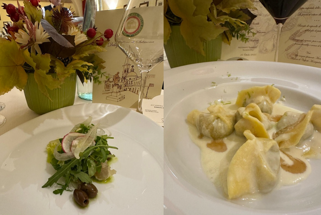In un’atmosfera di amicizia, allegria e convivialità, si è svolta la Cena Ecumenica 2025 della Delegazione di Sulmona presso il ristorante "Clemente". L’ambiente era ben curato e il menù, in linea con il tema ecumenico, è stato preparato con maestria dai cuochi Martina e Clemente. Il Simposarca Antonio Santilli ha illustrato le pietanze spiegandone origini e preparazione. I due antipasti e l’innovativo tortello scrigno di antichi sapori sono stati apprezzati da tutti gli Accademici. La giovane cuoca Martina ha realizzato un dolce in cui diversi sapori e consistenze si armonizzavano bene. Il relatore Attilio D’Antuono, discendente di una famiglia di macellai dal 1885, ha raccontato storie che vanno dalle tradizioni antiche ai cambiamenti moderni nella commercializzazione e nel trattamento delle carni.