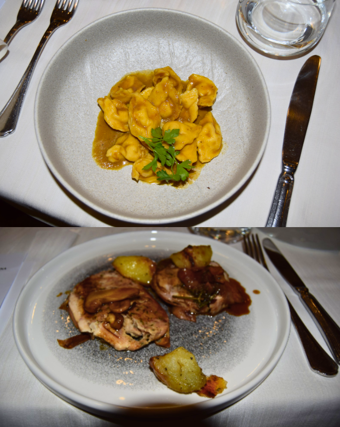 Bellissima ed apprezzata Cena Ecumenica, splendidamente organizzata dai Simposiarchi Carlotta Cioppa Petroni e Marco Poma (nella foto 1, insieme al Delegato e al Titolare del ristorante), presso il ristorante dell’Albergo Martinelli a Ronzo Chienis (TN), in Val di Gresta, famosa per i suoi ortaggi e denominata “Orto biologico del Trentino”. È intervenuta, in rappresentanza dell’Amministrazione comunale, la giovane Vice Sindaca ed Assessore alla Cultura dott.ssa Carol Sterni (foto 2). Interessantissime e piacevoli sia la presentazione iniziale del menù, alla luce delle tre T (il Territorio, la Val di Gresta e la sua vocazione agricola, la Tradizione della famiglia Martinelli e il Tema dell’anno), da parte del Simposiarca Marco Poma, sia la presentazione dei tre vini in degustazione durante la cena, da parte della Simposiarca Carlotta Cioppa Petroni. È intervenuto il Direttore del CST Vittorio Rasera, per la presentazione del libro dell’anno (foto 3). Molto apprezzati i piatti presentati, dedicati al tema dell’anno: lingua di vitello salmistrata bollita, tortelloni ripieni con ragù stufato, cervo brasato al forno (foto 4).