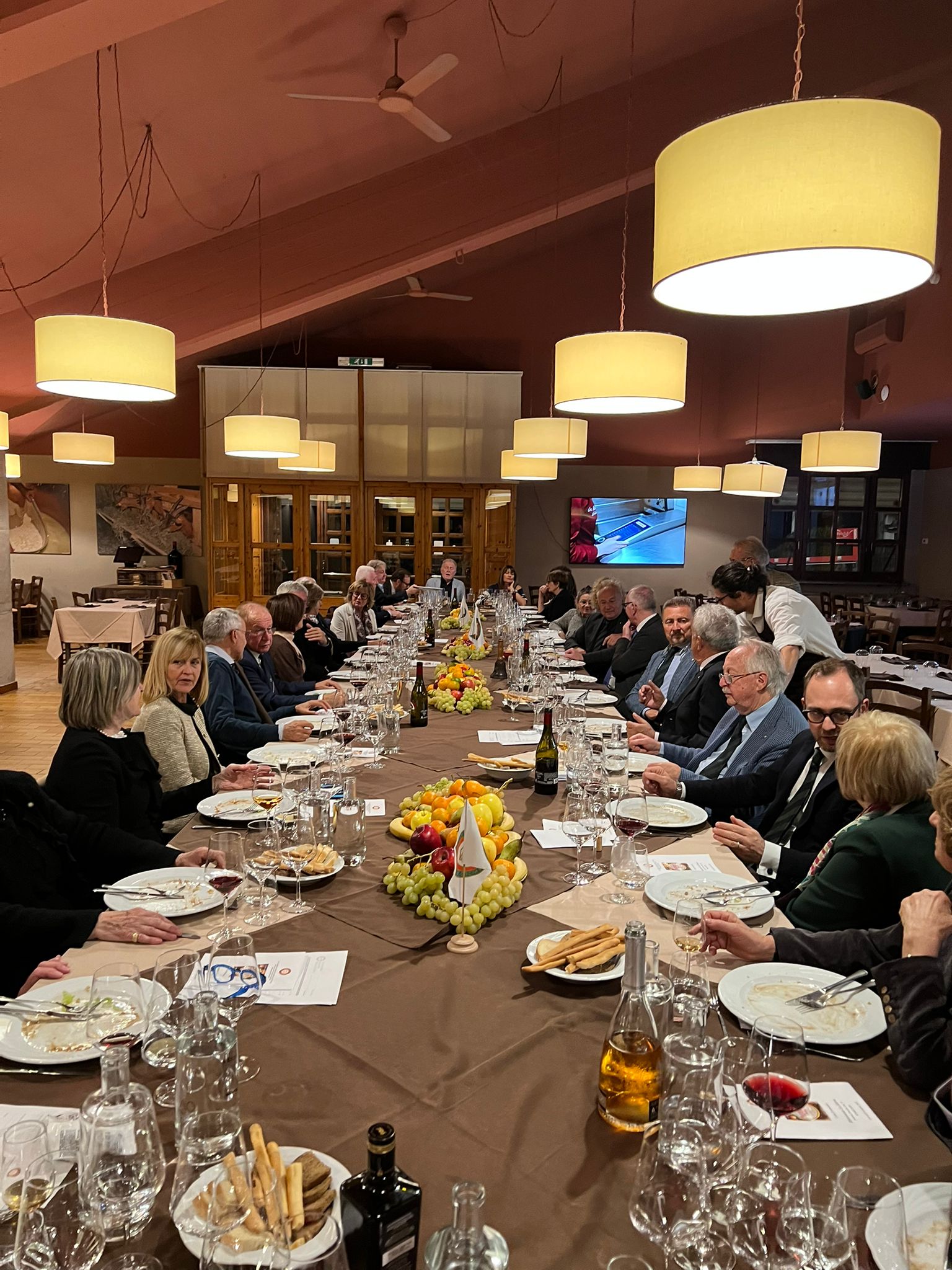 La Delegazione del Monferrato si è riunita per la Conviviale Ecumenica a Casale Monferrato, ospitata dall’accogliente Osteria Amarotto, punto di riferimento della cucina tradizionale casalese. Per celebrare l’evento, la Consulta della Delegazione ha scelto di dedicare la serata all’arrosto ed in particolare a tre carni: anatra, faraona e oca, ciascuna arrostita con la medesima procedura ma accompagnate da contorni diversi (radicchio, patate al forno e verza). Il menù comprendeva, oltre al benvenuto della cucina, una terrina di faraona, salame d’oca, friciulin e un delizioso dessert di frappe con crema e frutti di bosco. La degustazione orizzontale dei tre arrosti, apprezzata per originalità e rigore, ha suscitato grande entusiasmo tra Accademici e ospiti, offrendo l’occasione di riscoprire carni tipiche della tradizione monferrina, oggi un po’ desuete. Il Delegato, dopo aver illustrato il menù, ha relazionato sul tema dell’anno e aggiornato i presenti sul recente Forum di Bari, condividendo le preziose informazioni dispensate ai Delegati e Legati di tutto il mondo.