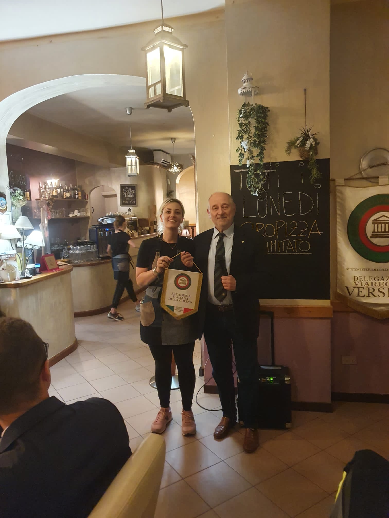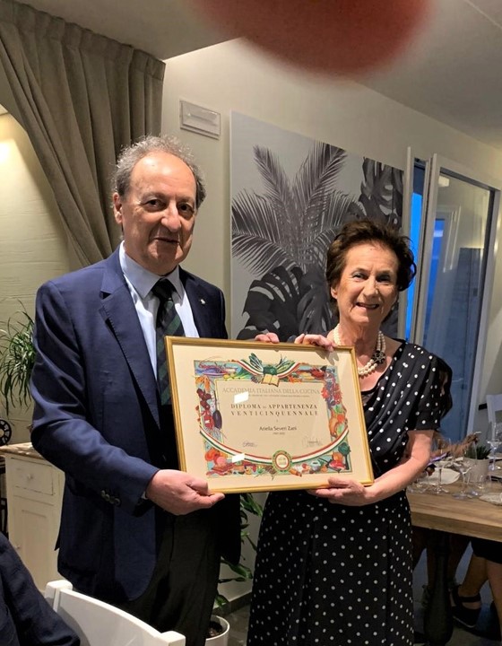 La Delegazione di Viareggio Versilia si è ritrovata al ristorante "Renzo" a Massarosa (LU) per celebrare i 40 anni di appartenenza degli Accademici Emilio Celli ed Eugenio Del Vecchio con la consegna degli Attestati di Benemerenza e i distintivi coniati per queste importanti ricorrenze. Il convivio è stato la cornice per festeggiare Emilio Celli, Delegato dal 2001 al 2007 ed Eugenio Del Vecchio, Delegato dal 2011 al 2013. L'intera Delegazione si è stretta a Emilio ed Eugenio e ha applaudito la passione da loro dimostrata per ben 40 anni. Foto 1. Emilio Celli, il Delegato Alberto Petracca ed Eugenio Del Vecchio. Foto 2. La titolare del ristorante "Renzo" e il Delegato Alberto Petracca. Foto 3. Il menu della Conviviale.