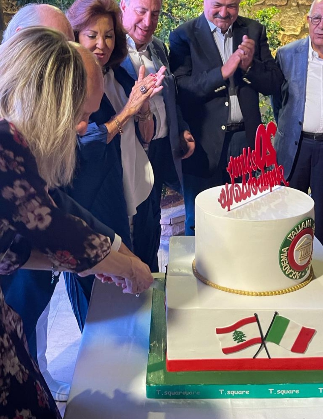 La Delegazione di Beirut ha celebrato il suo ventesimo anniversario con una memorabile serata nei giardini del famoso Aero Club di Beirut, alla presenza di Sua Eccellenza Nicoletta Bombardiere, Ambasciatrice d'Italia e Accademica onoraria della Delegazione, e di un gran numero di Accademici e loro ospiti. La serata è iniziata con la proiezione di un video di congratulazioni alla Delegazione trasmesso dal Presidente Paolo Petroni, accolto da un grande applauso. Più di 110 persone hanno apprezzato il buffet dello chef Aly e della sua brigata. Su un maxischermo è stata proiettata e commentata una breve sintesi delle attività in tutti questi anni della Delegazione e delle varie visite e viaggi in Italia. A conclusione della importante serata, il taglio della torta realizzata con il logo e i colori dell'Accademia.